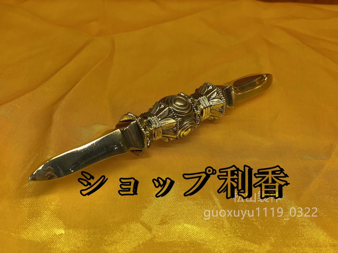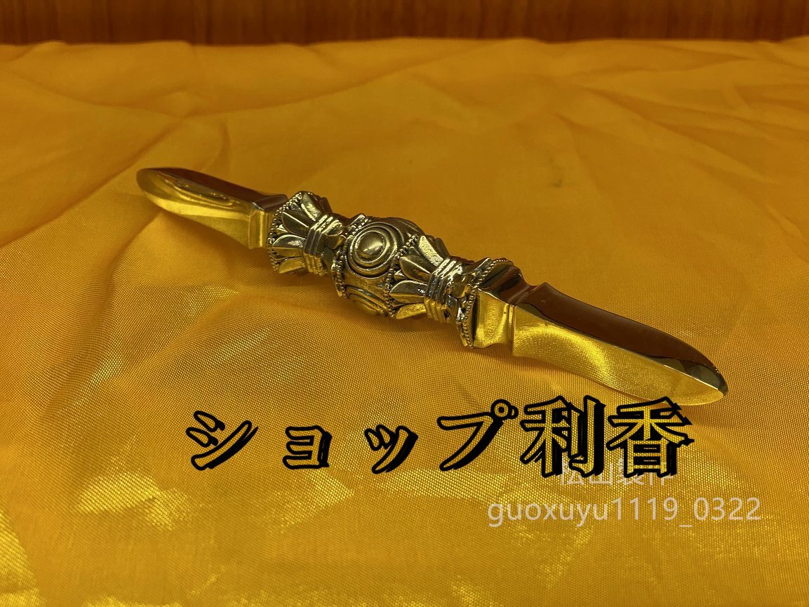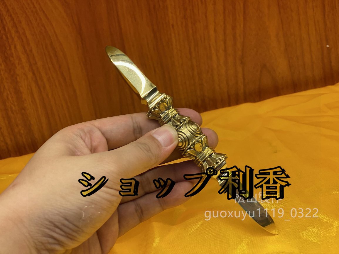 「密教法具 寺院用仏具」 美品 鬼目型 独鈷杵 真鍮製磨き仕上げ 大型165mm