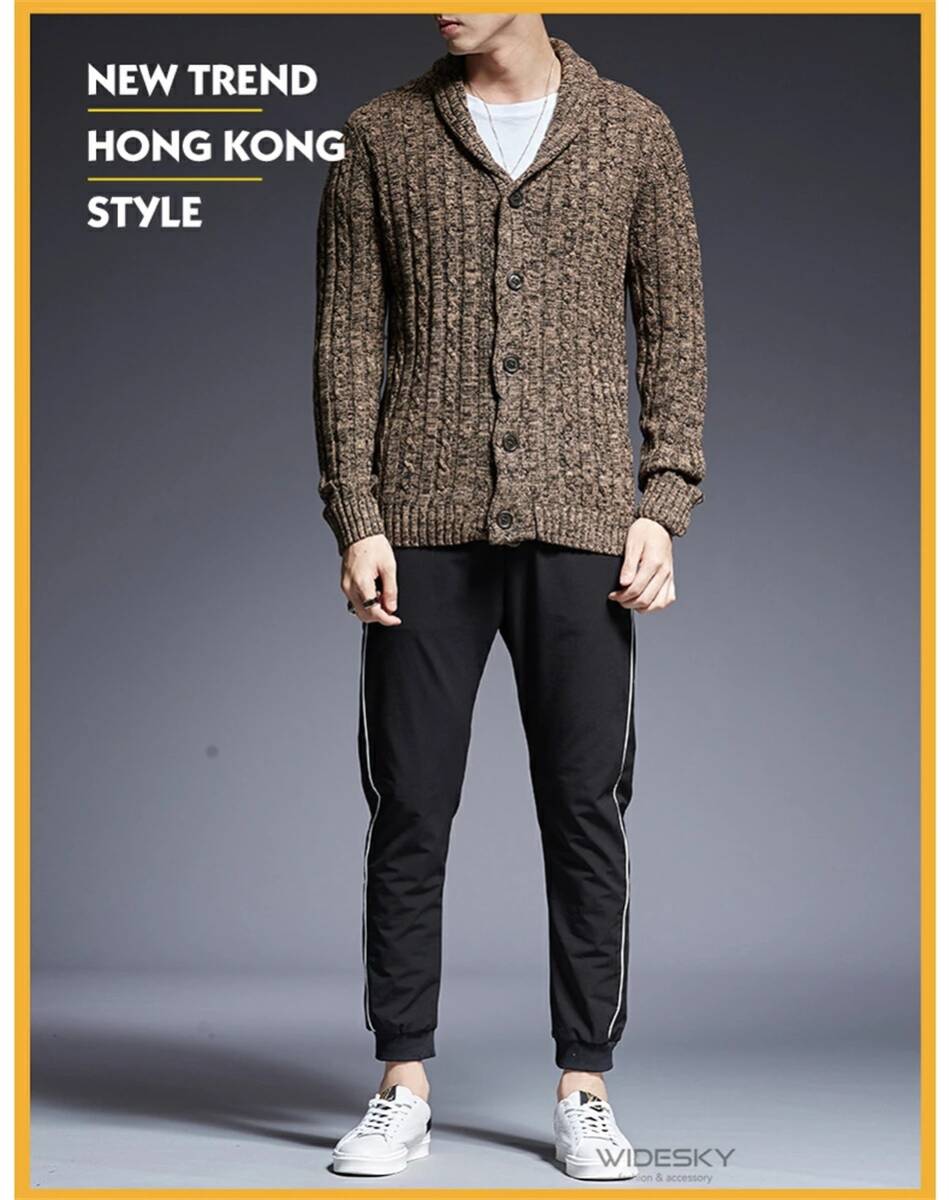 ★新品★メンズ LWMZ13-Mサイズ コーヒー色 カーディガン 厚手 春秋冬 ビジネス 通勤通学 スクールセーター シンプル ユニセックス