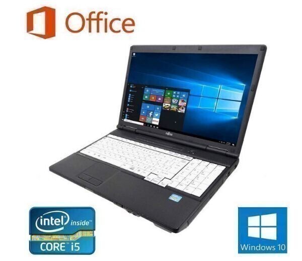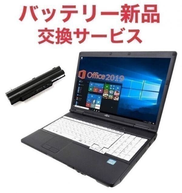 【サポート付き】【バッテリー新品】A561 富士通 Windows10 Office SSD:120GB メモリー:8GB & PQI USB指紋認証キー Windows Hello機能対応