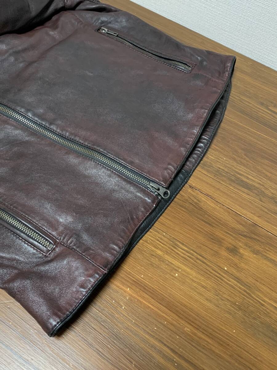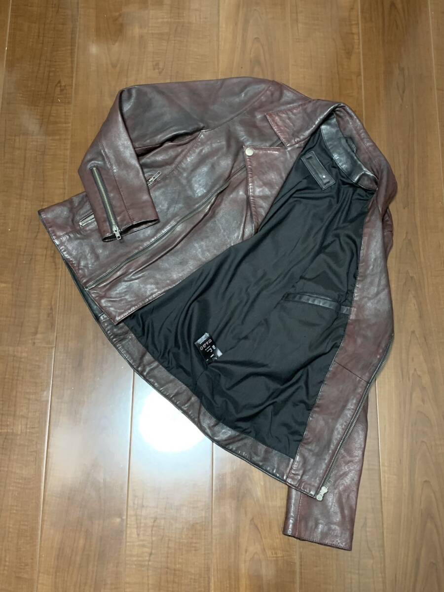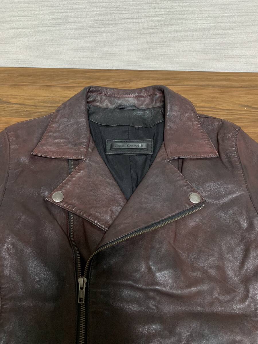 美品☆[Liugoo Leathers] むら加工 ダブルライダース レザージャケット L 羊革 ボルドー リューグーレザー
