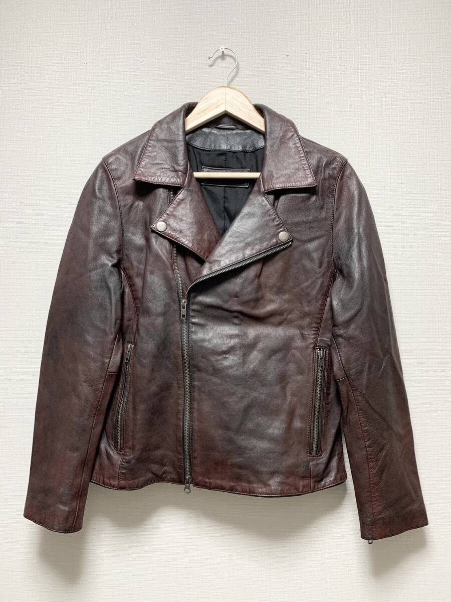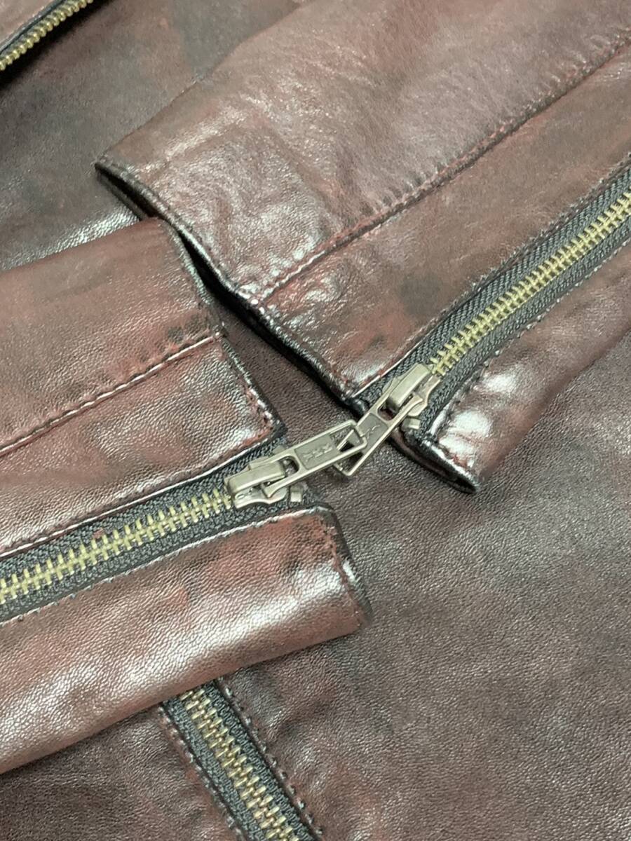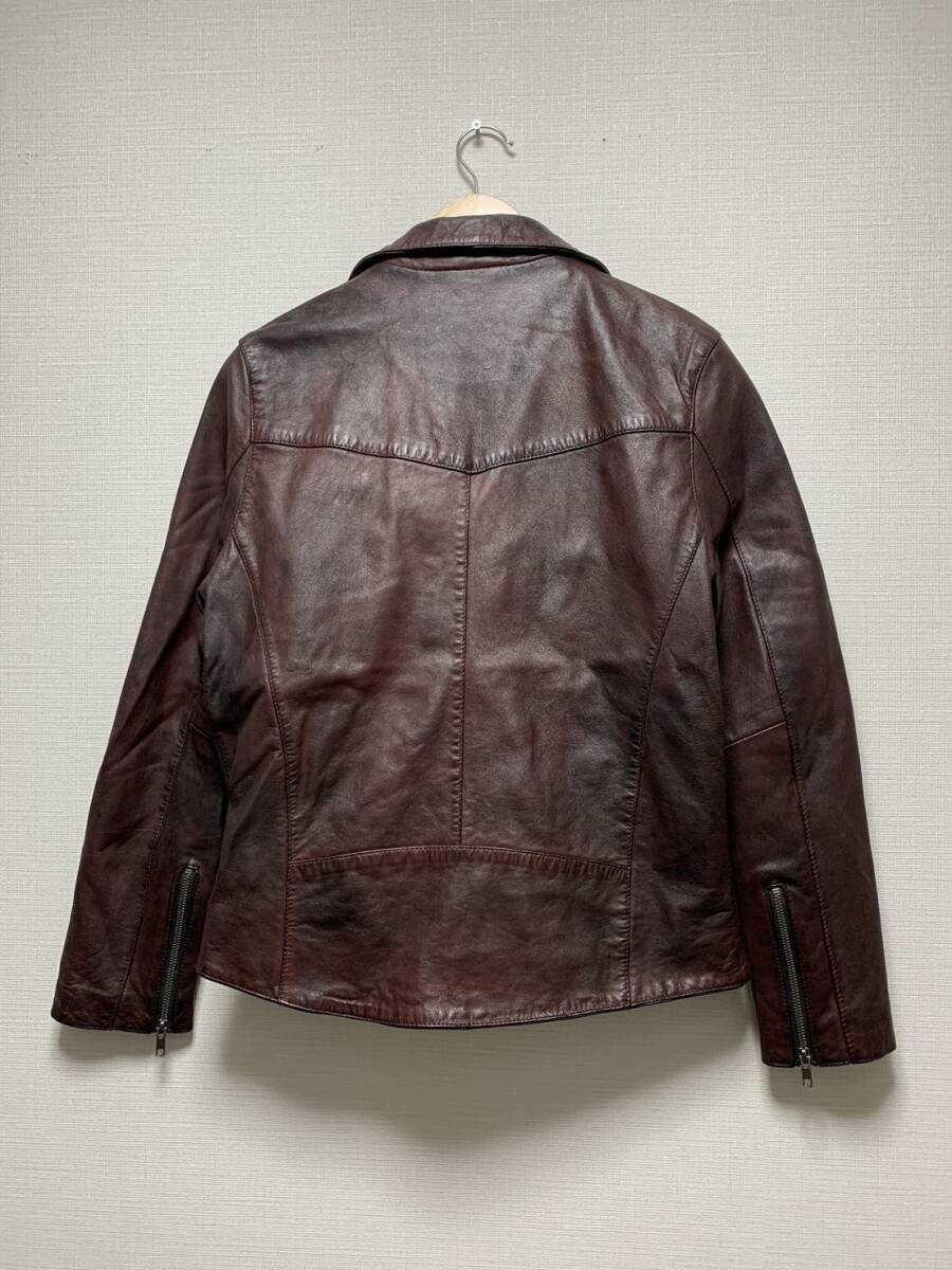 美品☆[Liugoo Leathers] むら加工 ダブルライダース レザージャケット L 羊革 ボルドー リューグーレザー