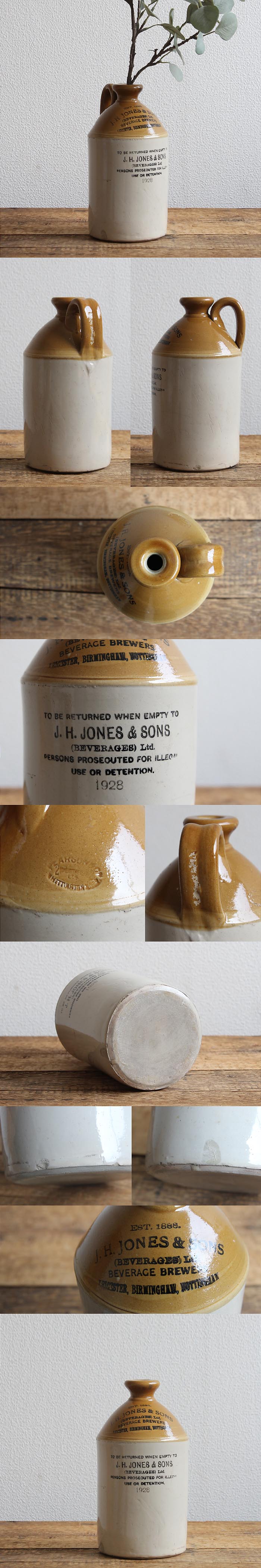 イギリス アンティーク ビアボトル 陶器 容器 インテリア雑貨「フラワーベースにも」P-290