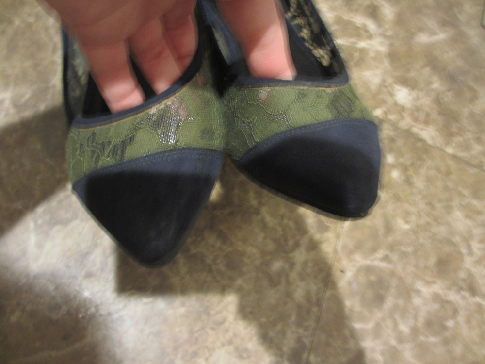 sestaセスタレース切り替えストラップデザインパンプス濃紺×グリーン上品23.0cm ダメージ無し
