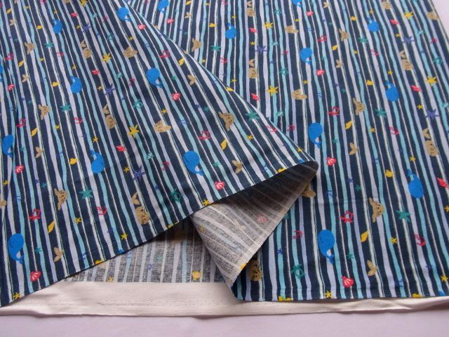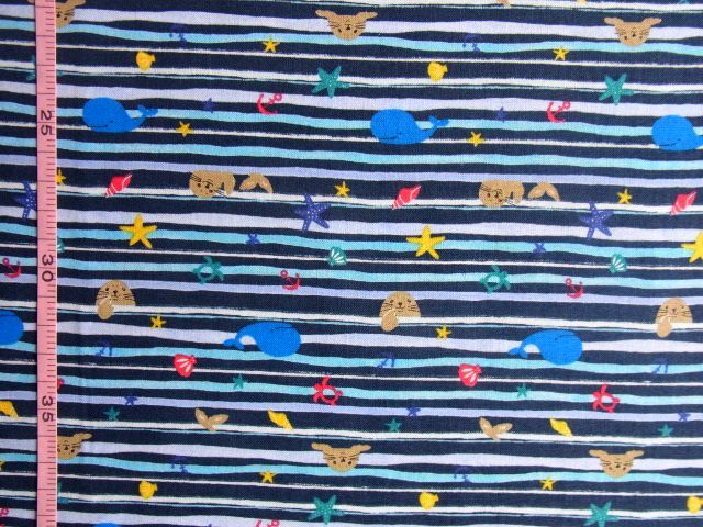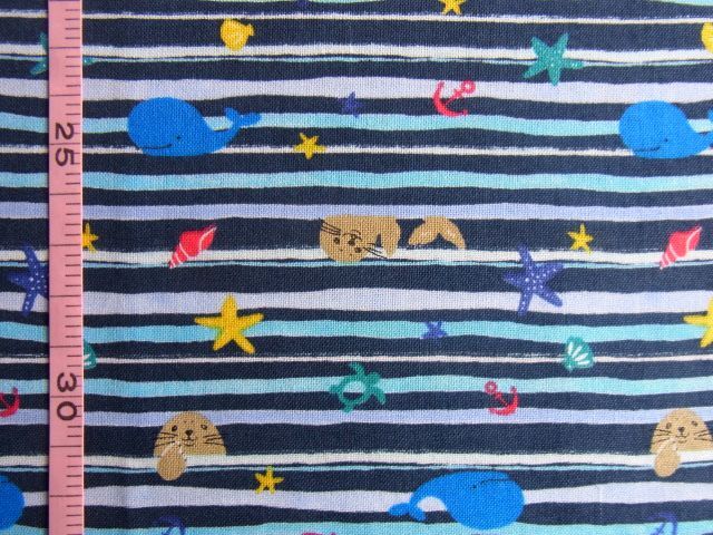 シーチング【海の生き物・波ボーダー(ブルー)】[NE2086-B]
