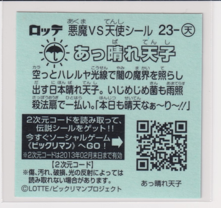ビックリマン伝説2 天 023 あっ晴れ天使 (画像あり) b