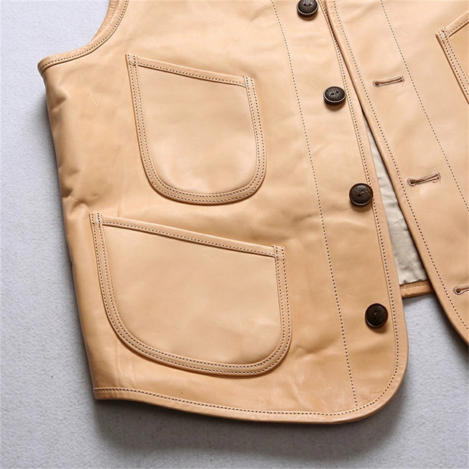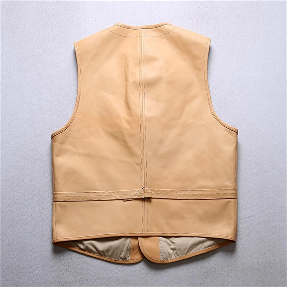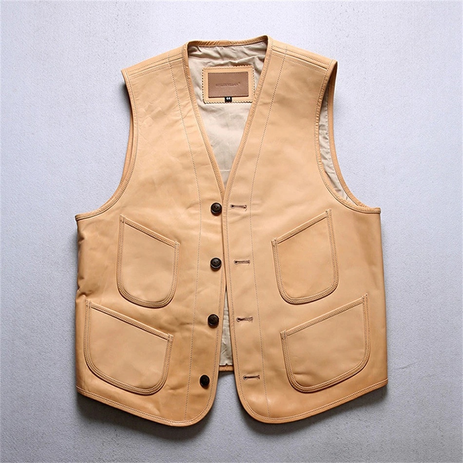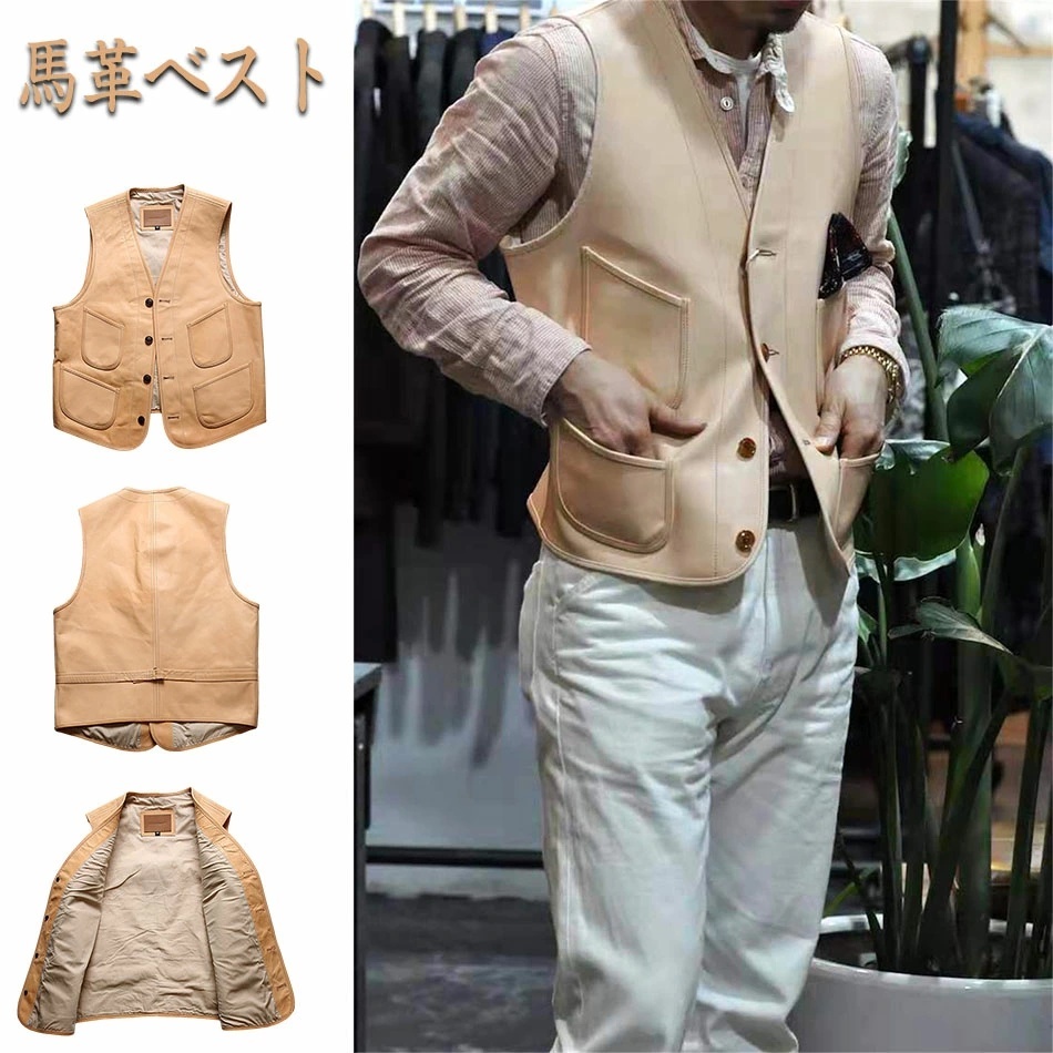 ★新品★メンズ LWMZ24-XL ベージュ 馬革ベスト レザーベスト バイクベスト パンク風 カジュアル ライダースベスト バイクウェア 本革