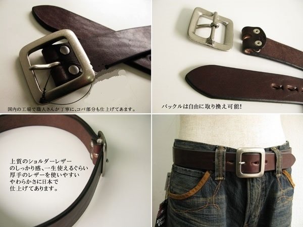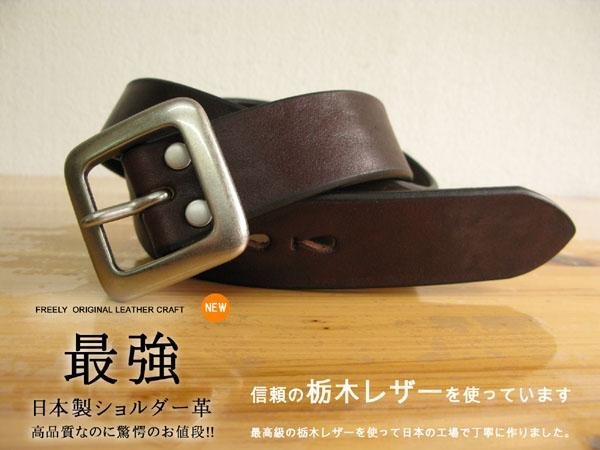 日本製 最強本牛革ベルト ショルダー こげ茶 30インチ75cm SB-C 本革 栃木レザー 強度抜群 メンズ ベルト 厚めの革 日本製 MEDE IN JAPAN