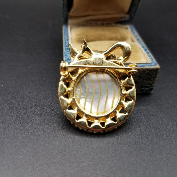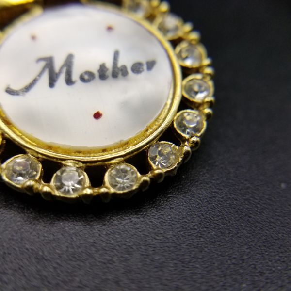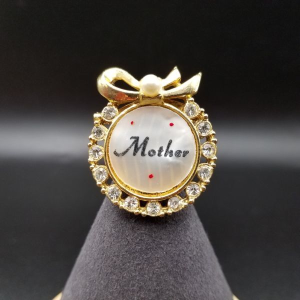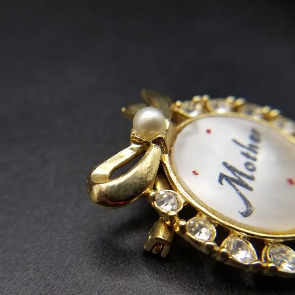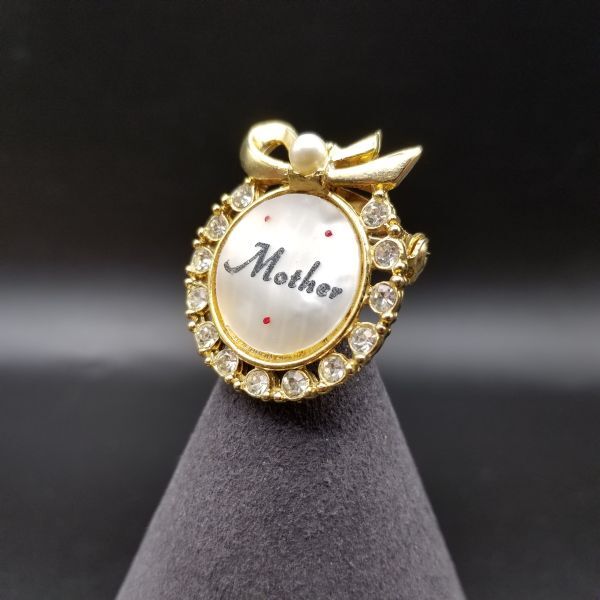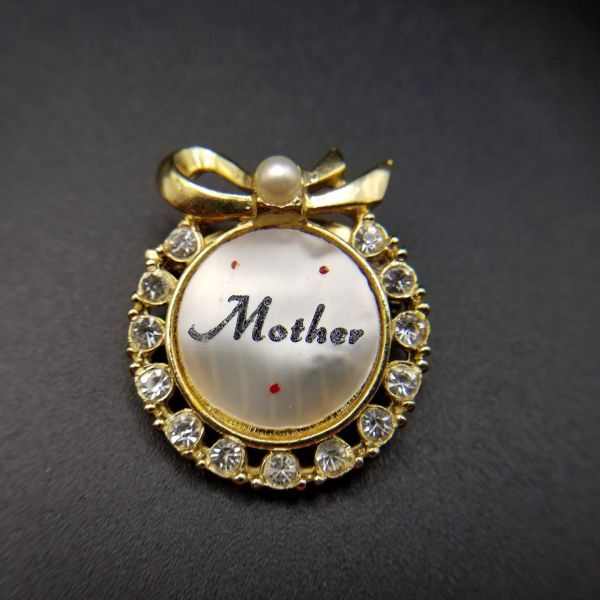 Mother リボンリース ヴィンテージ ブローチ パール ラインストーン装飾 ゴールドトーン レトロキュート コスチュームジュエリー AJX②21