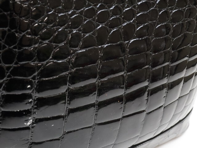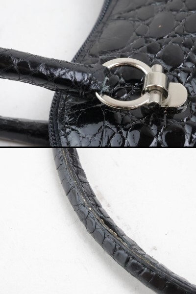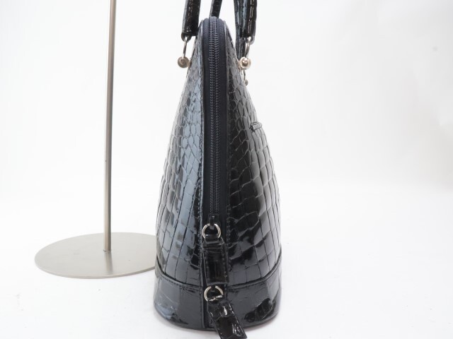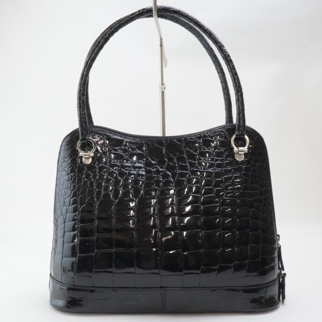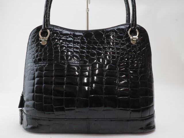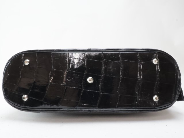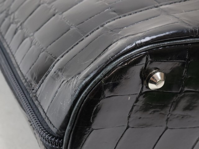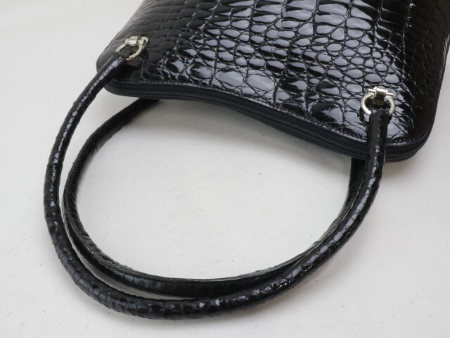 | 2403-109 クロコダイル製 ハンドバッグ ブラック 銀金具 上ZIP | |
