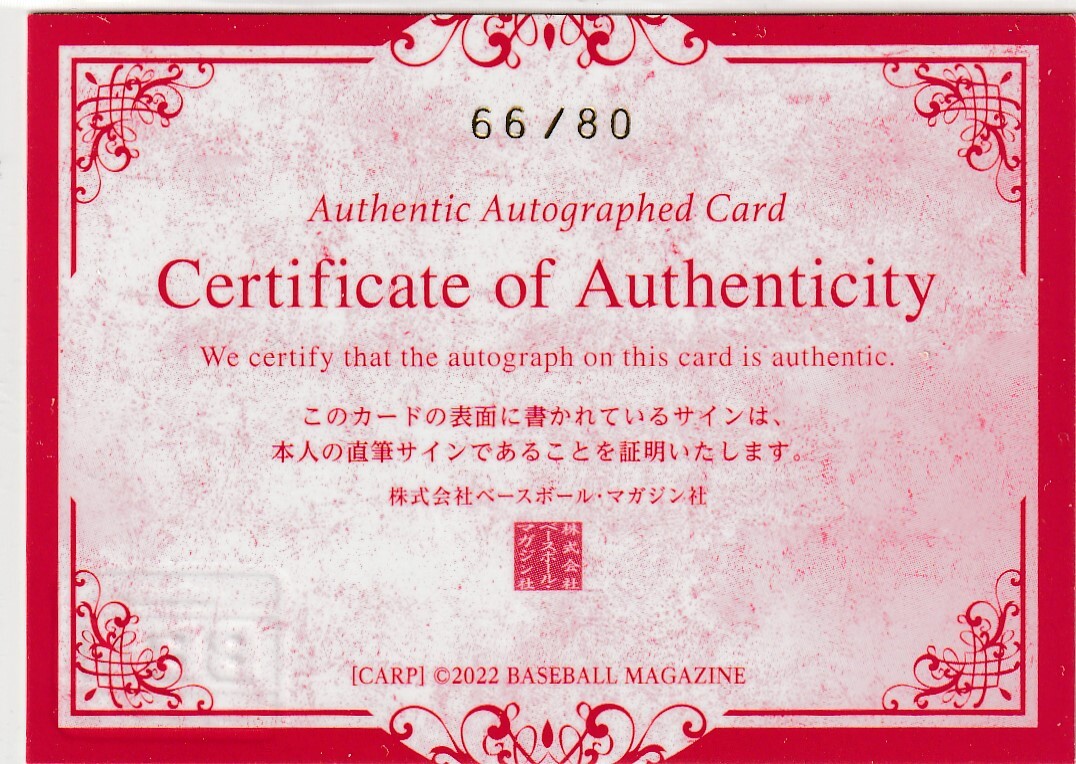 パックから出る直筆サインカードでシリアルナンバーが入っています。スキャナーの埃や縦線が写っている場合がありますが現物は美品です。
