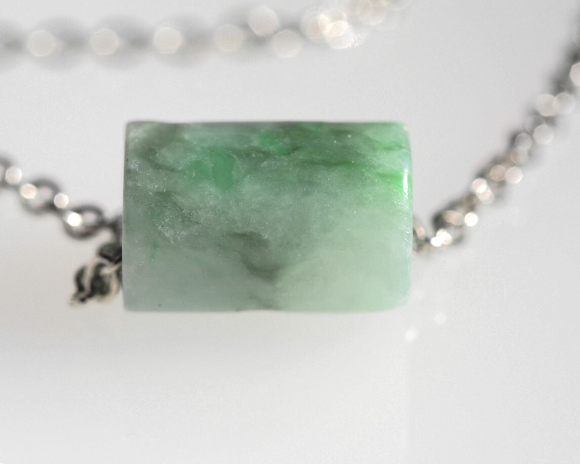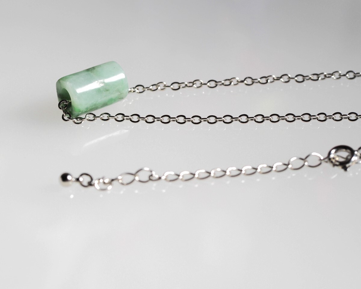 サイズ | *糸魚川翡翠(天然無処理)サイズ:約8.5mm×8.5mm×13mm *管玉通し内径:約3.5mm *ネックレス全長:約53㎝~59cmまで自由調整ができます |