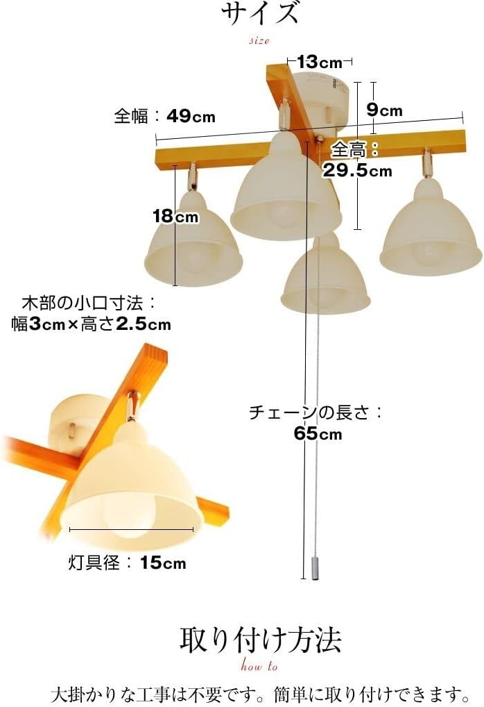 • 適応畳数:~12畳まで 10畳までであれば60W相当電球がおすすめです。12畳であれば100W相当のLED電球をお使いください。4灯(全灯、内2灯、外2灯、消灯)プルスイッチ