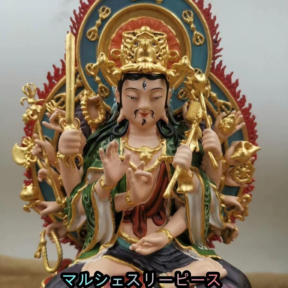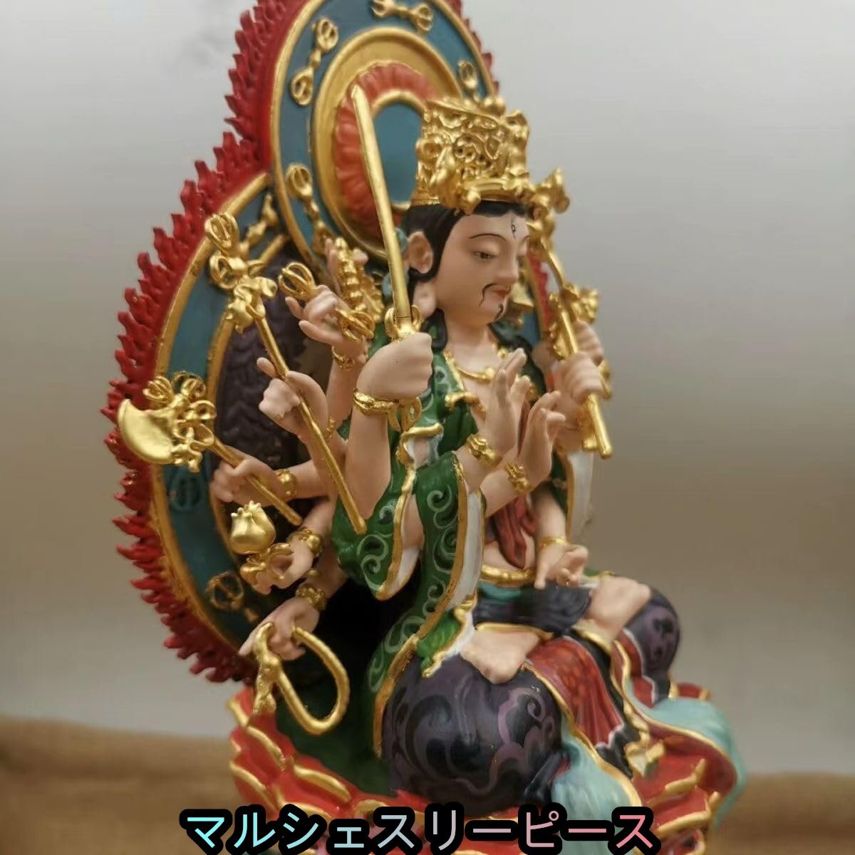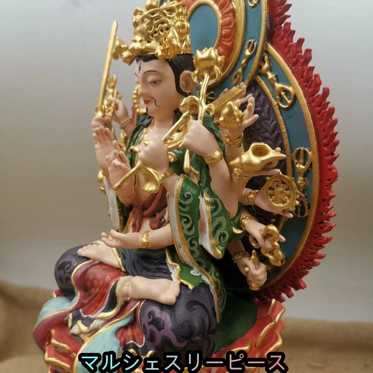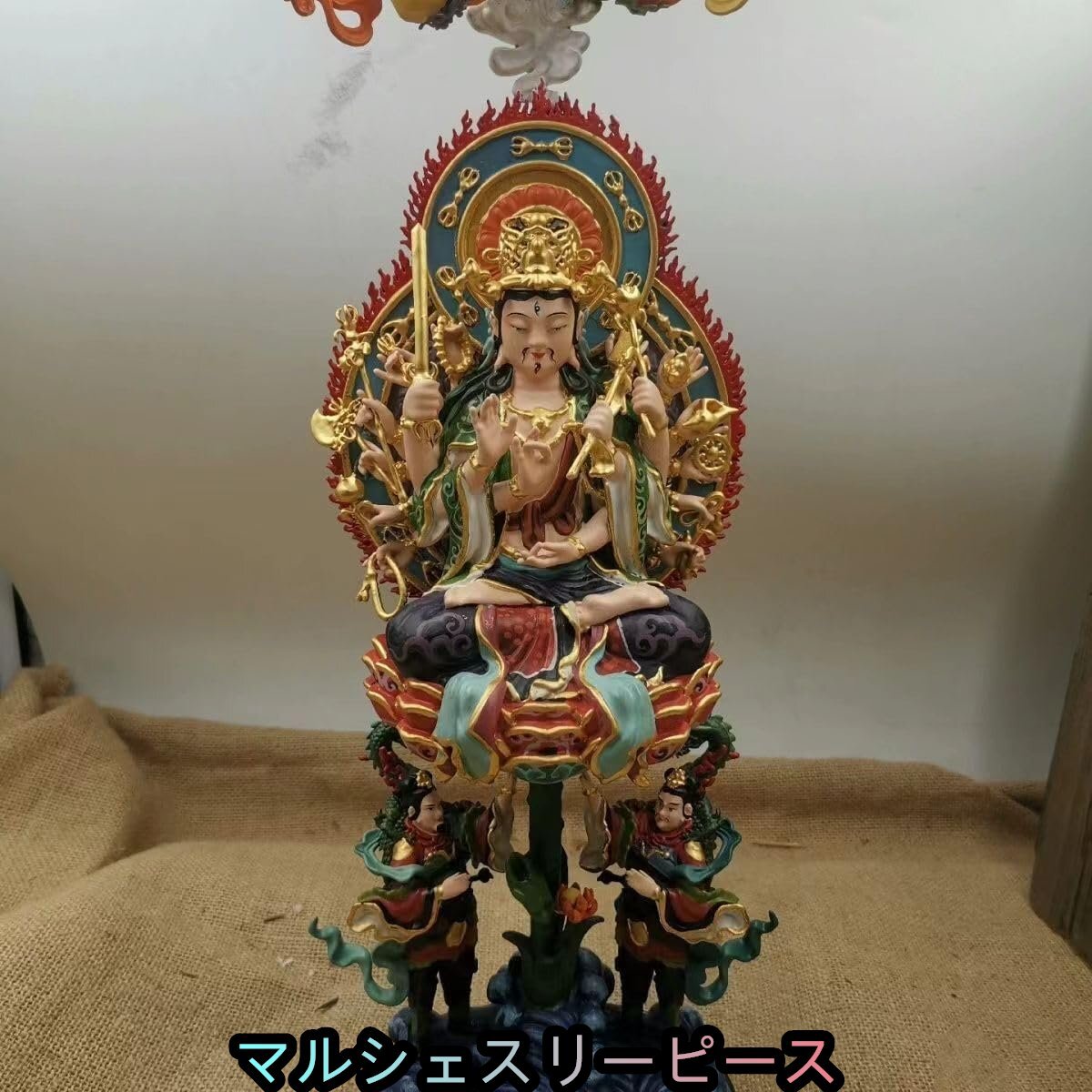准胝観音 仏像(じゅんていかんのん) 高さ39cm 銅製 観世音菩薩 仏像 フィギュア 仏壇用のご本尊仏像 祈る 厄除け(極彩色絵系)1