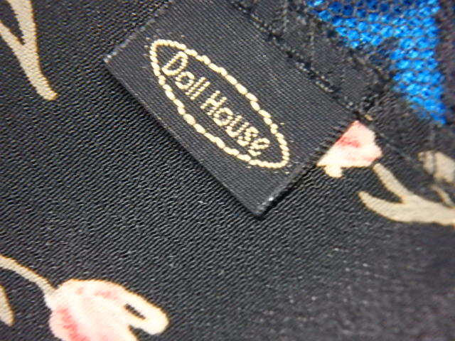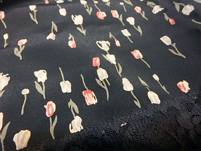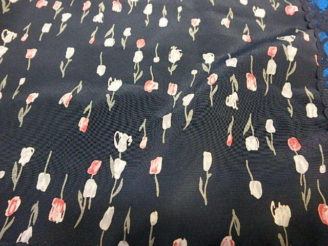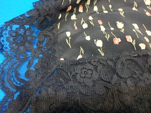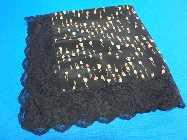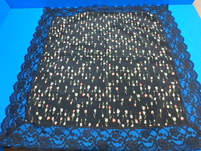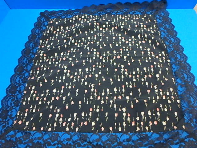 n404k Doll House ドールハウス チューリップ柄 花柄 黒 ブラック レース スカーフ 約63cm×63cm 中古(0306-1)