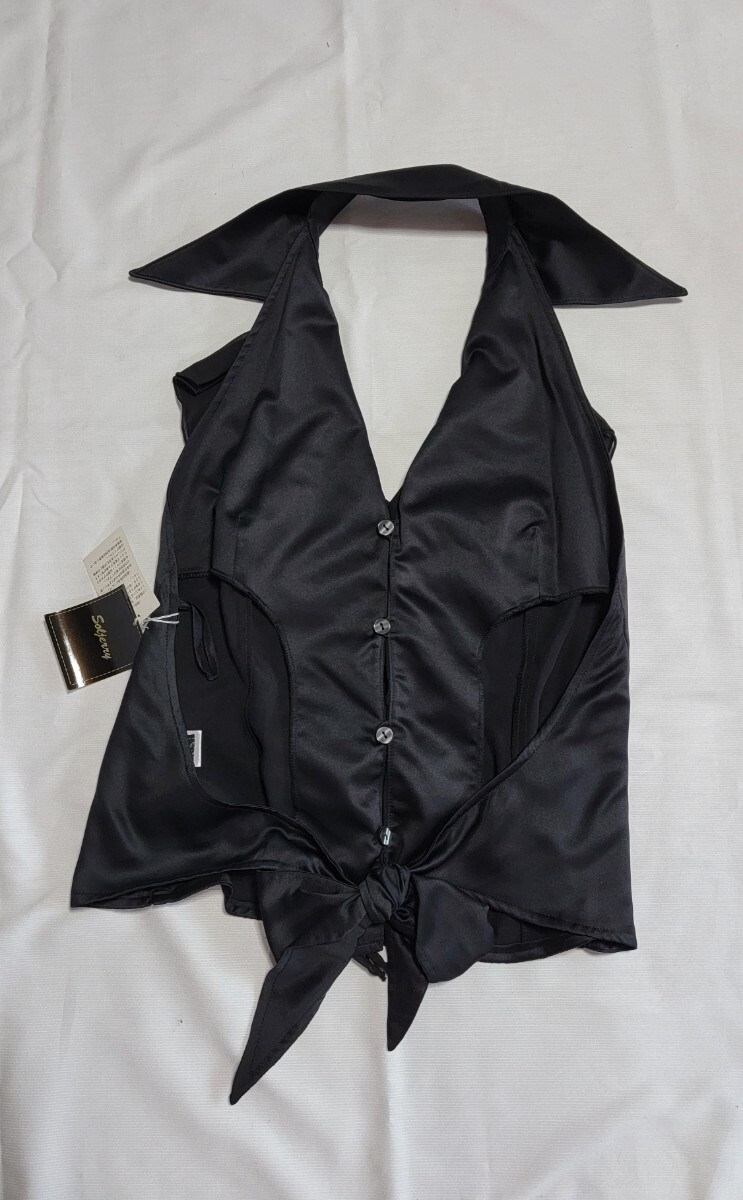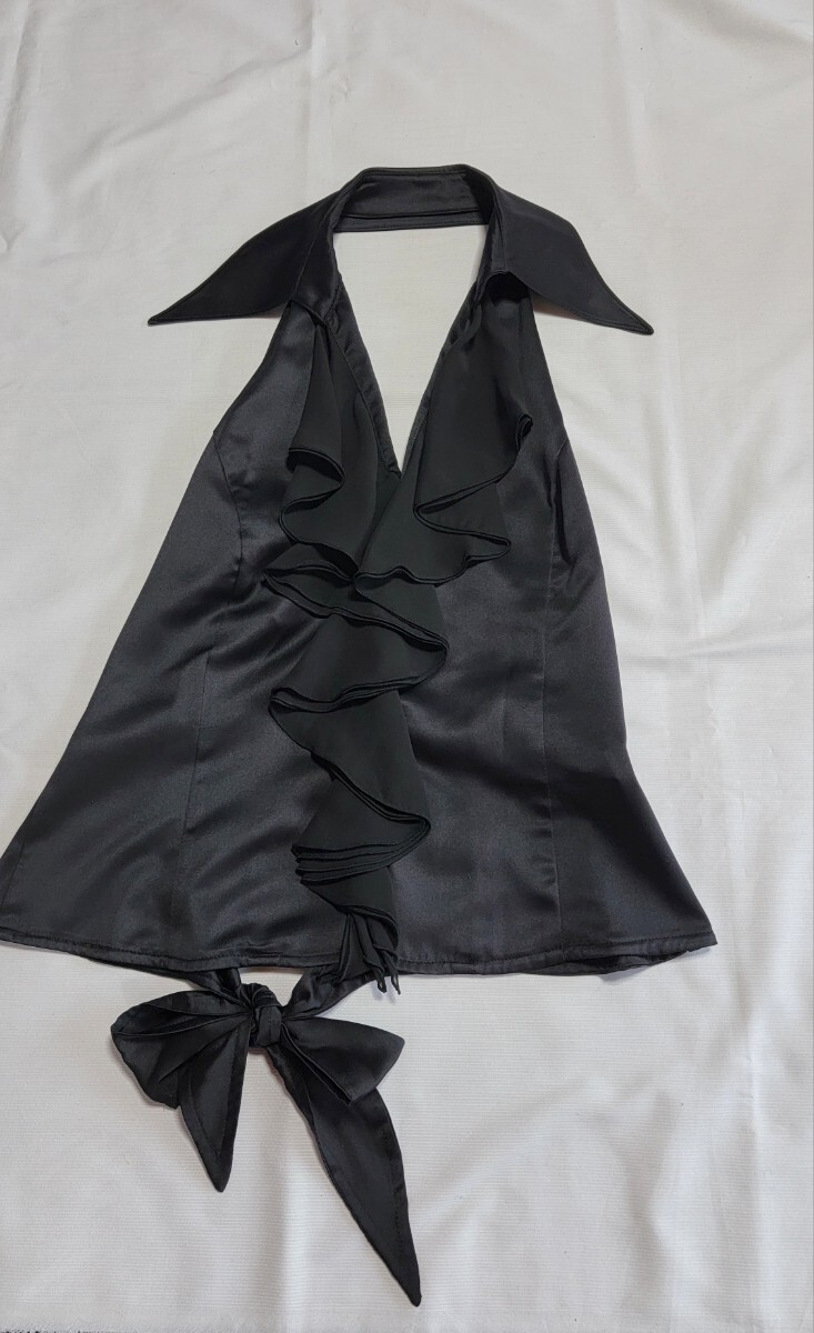 ブラウス・前フリル、背中開いてます。腰辺りで結びます。