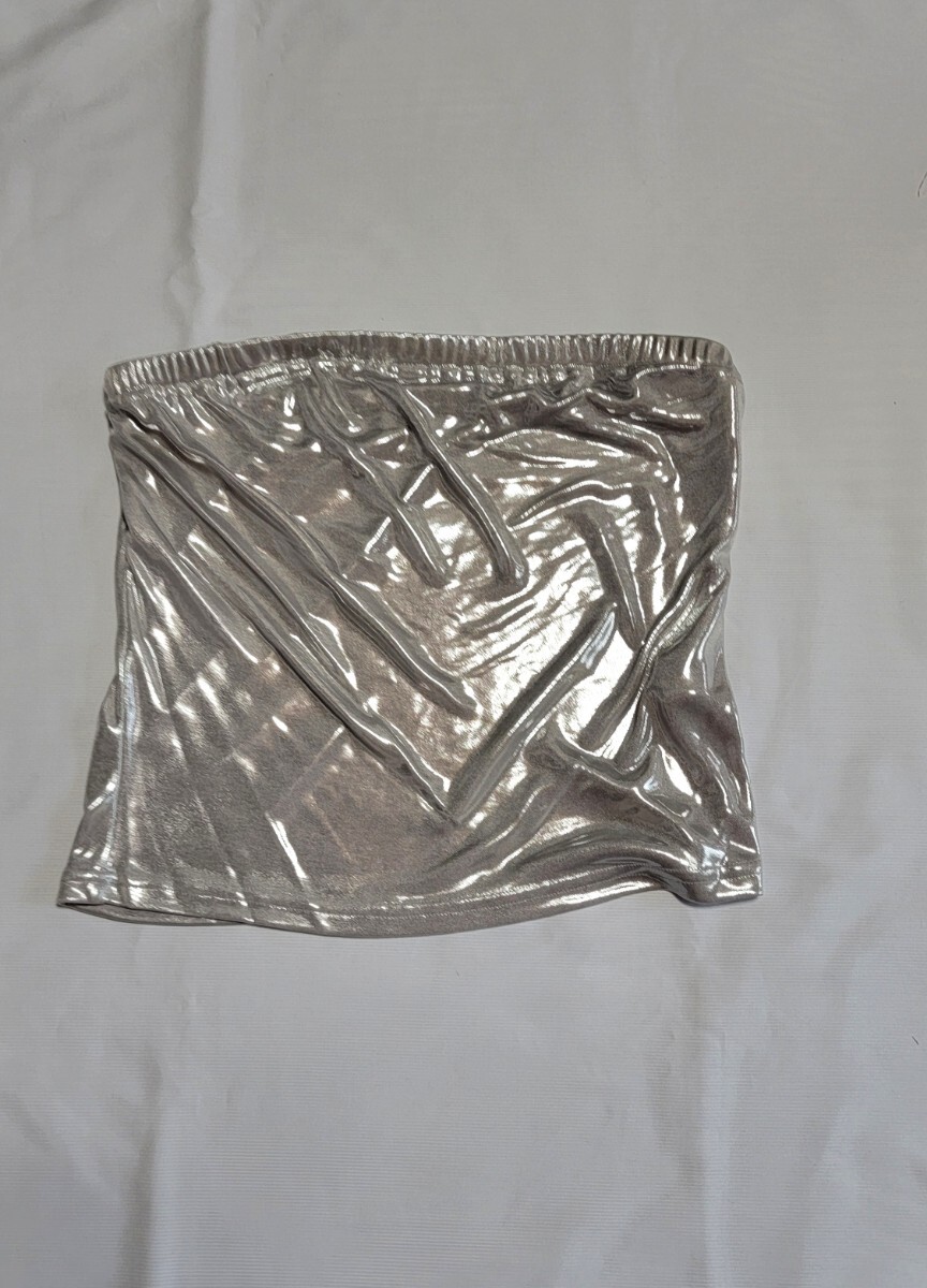ビスチェ・キラキラシルバー、上ゴム、ストレッチ素材、縦約28cm