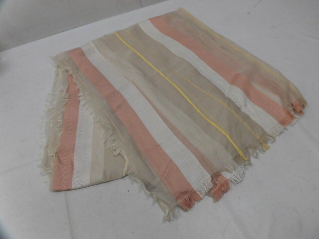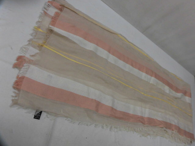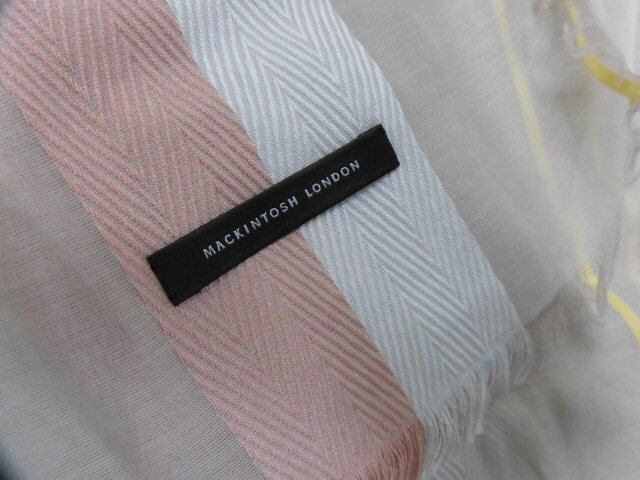 イタリア製 MACKINTOSH LONDON マッキントッシュ ロンドン ストール フリンジ 薄手 ボーダー ストライプ 柄 ベージュ系 コットン100%
