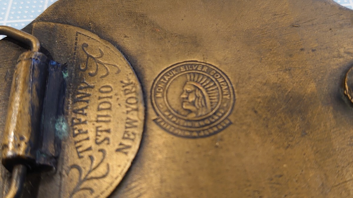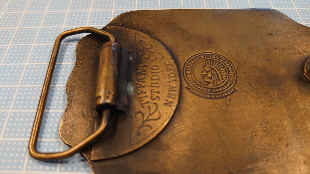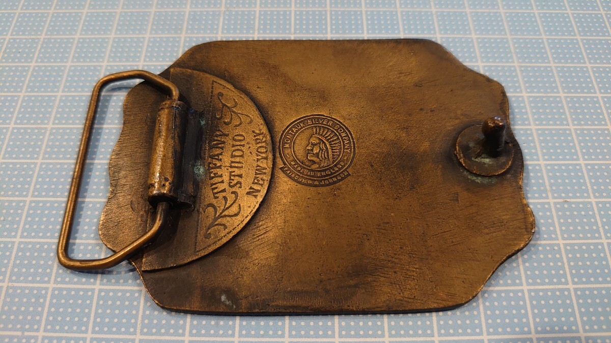 素晴らしい金属工作技術を持つ本場米国製のベルトバックルです。未使用ですが古いもので製造流通保管過程に付くスレアタリ酸化変色などがある場合もございます。画像では実物と違った色に見える場合もあるようですが、こちらは錆びた真鍮系の色です。苦情返品なしでお願い致します。187グラムほど。ベルト幅45ミリくらいまでです。