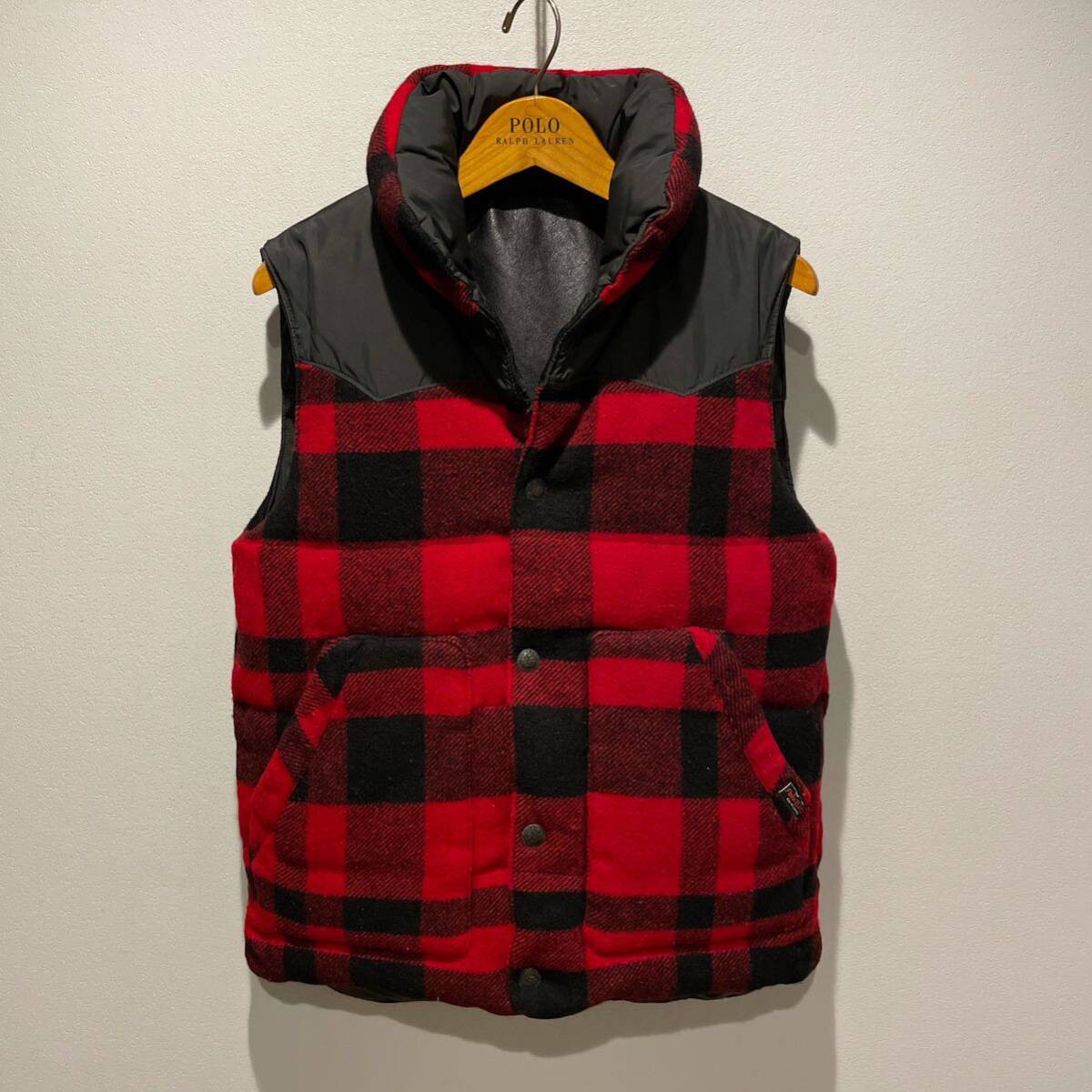ラルフローレンのダウンベストです。 レザーヨーク切替のブラック面とバッファローチェック柄のウール面でのリバーシブル仕様です。 ポロラルフローレン(株)内タグ付きの国内正規品です。 【素材】 表地:ポリエステル100% 皮革部分:牛革 裏地:毛85% ナイロン15% 別布部分:ポリエステル100% 中綿:ダウン80% フェザー20% | ||
