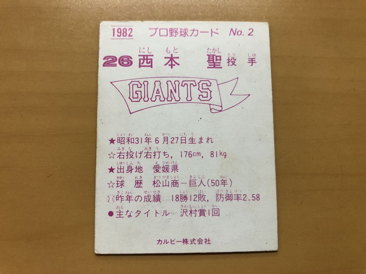 カルビープロ野球カード 1982年 西本聖(巨人) No.2