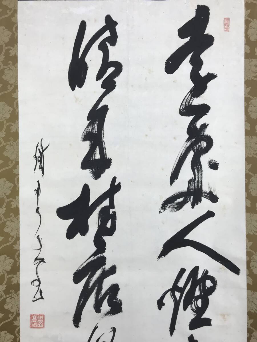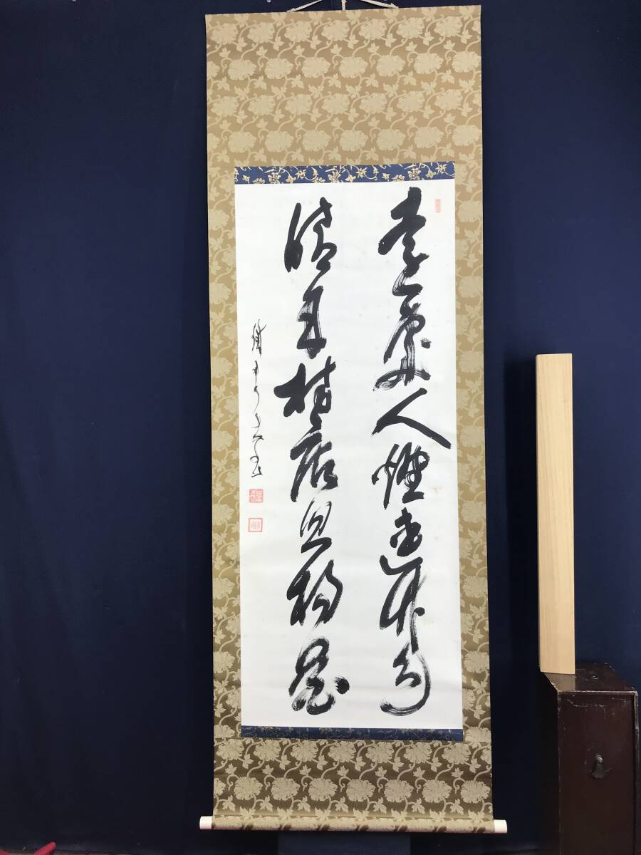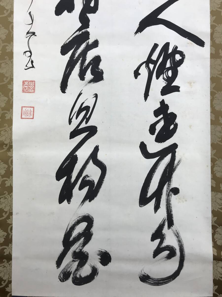 真作/山岡鉄舟/二行書/七言二句/幕末三舟の一人/幅広/掛軸☆宝船☆AF-319