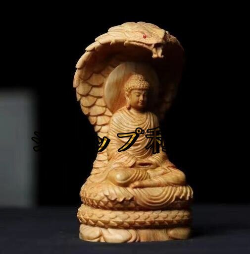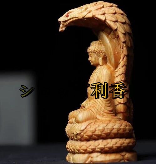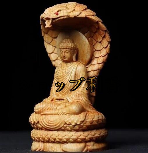特売!仏教美術 精密彫刻 鎮宅辟邪 仏像 手彫り 木彫仏像 崖柏木 蛇仏立像★高さ約12cm