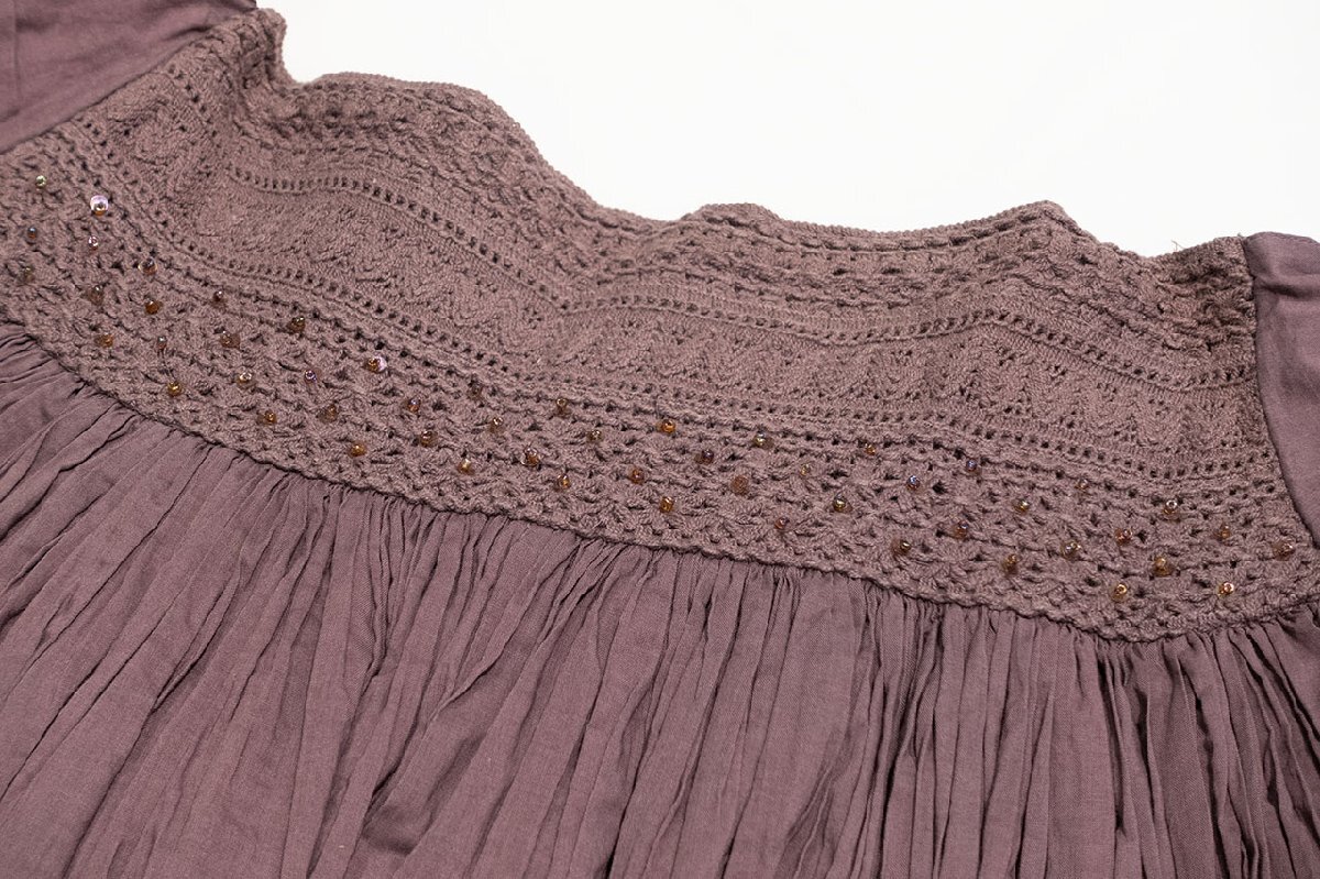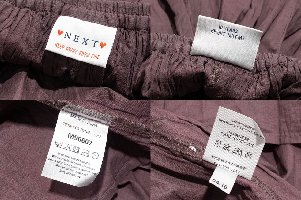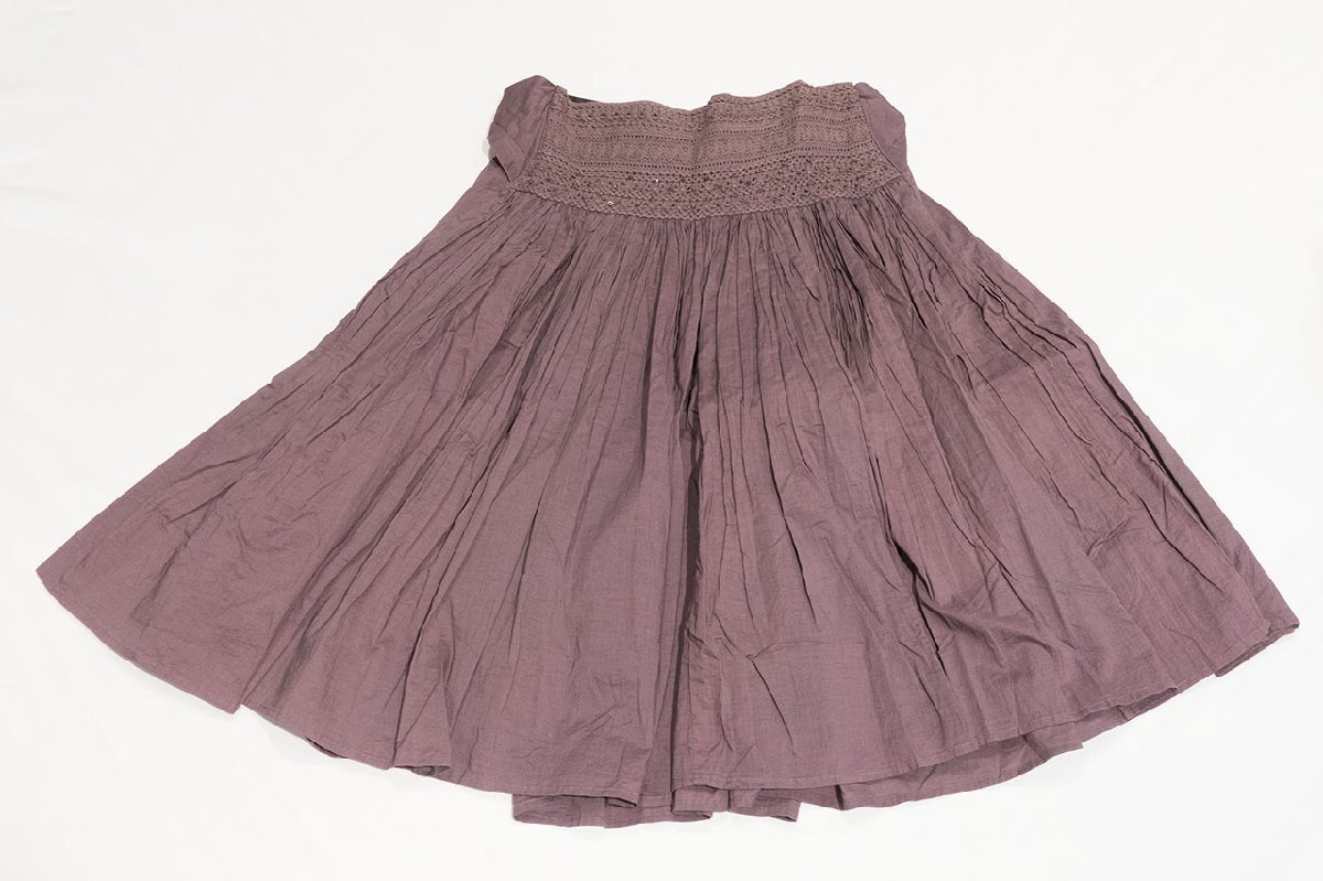 写真ご覧いただきありがとうございます。 当方オノの洋服と申します。 この出品は当社の通常商品ではなく 私オノ の趣味の部分でございます。遊びですからお気軽に入札御待ちしております。 子供用のスカートでございます。 10年ほど前、出張の折にロンドン近郊のポートベロー・マーケットで買い求めたものです。うちの娘用にと思い購入しましたがあいにくとサイズが合わず、永らくしまったままになっていました。この先必要になることも無さそうなので、どなたかにお役に立てていただければと思い出品することにしました。 コットン製で裏地は付いていません。タグには英語で「10歳 身長140cm」と書かれています。フロントウエスト部分はビーズをあしらったデザインになっています。全体としてはきれいですが総じてやや埃っぽい品です。またこういうデザインなのでしょうが染めは均一ではなく少しムラがあります。あと、コットン製ですので着用や洗濯に伴う色落ちがあると思います。この点ご了承お願いいたします。 ■素材 コットン100% ■寸法 総丈:57cm ウエスト:60~70cm ■生産国 インド | ||