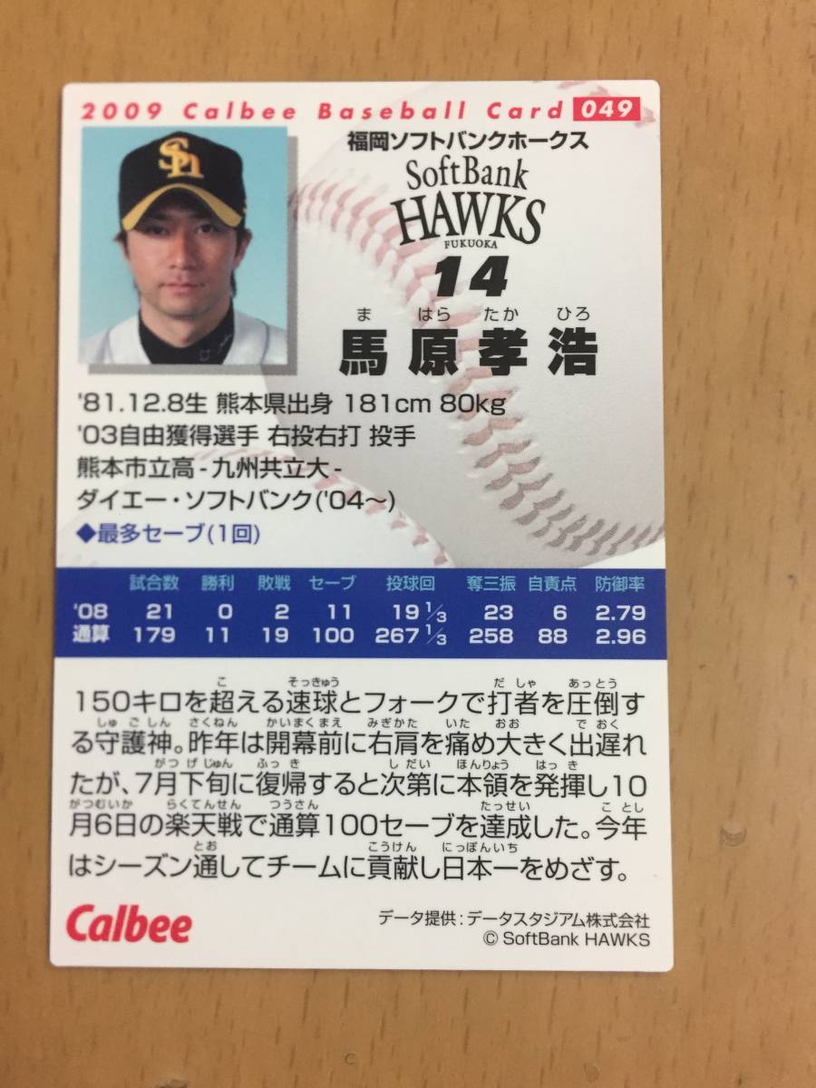 2009年カルビープロ野球カード・049・馬原孝浩(福岡ソフトバンクホークス)