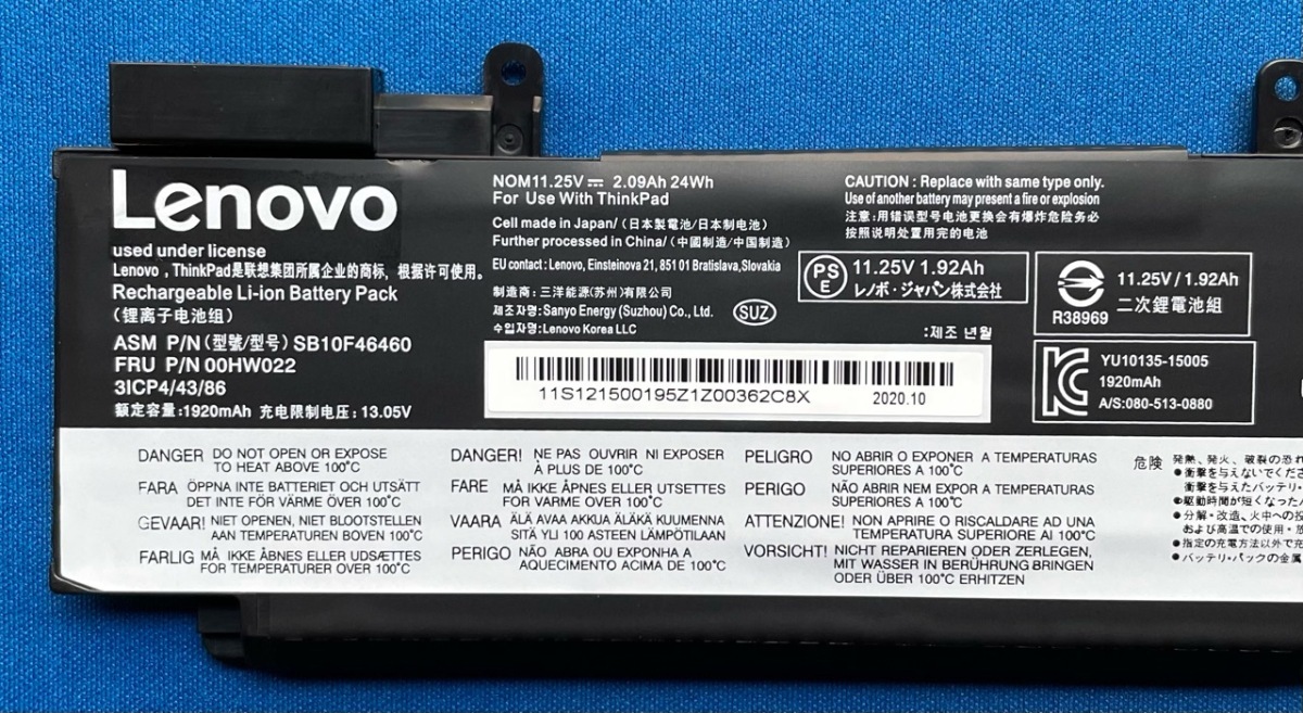 純正新品 Lenovo ThinkPad T460s T470s等用 フロントバッテリー 00HW022