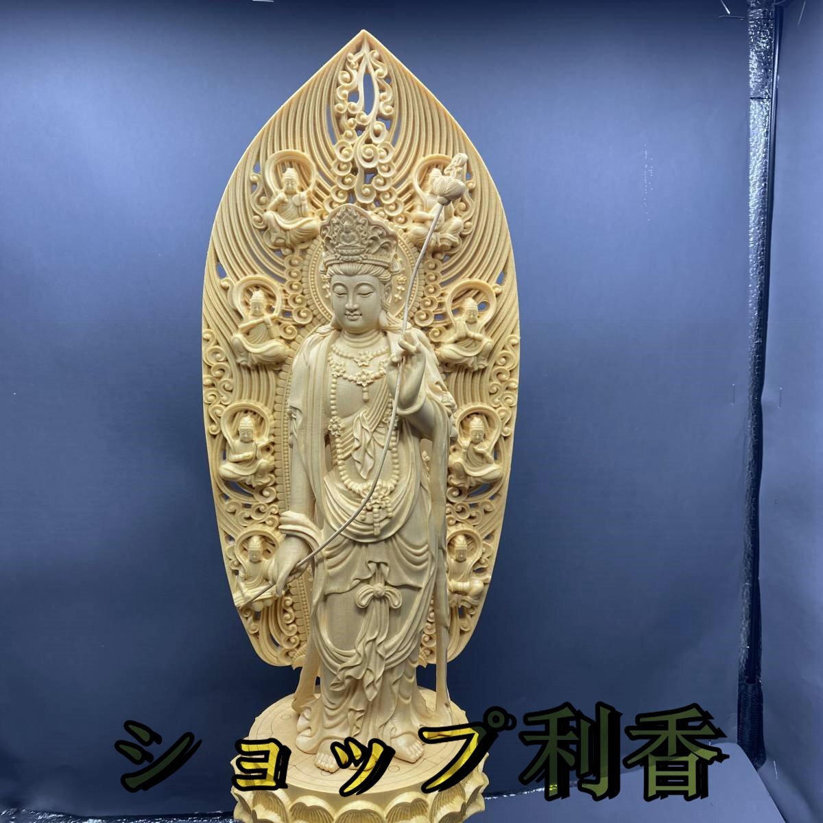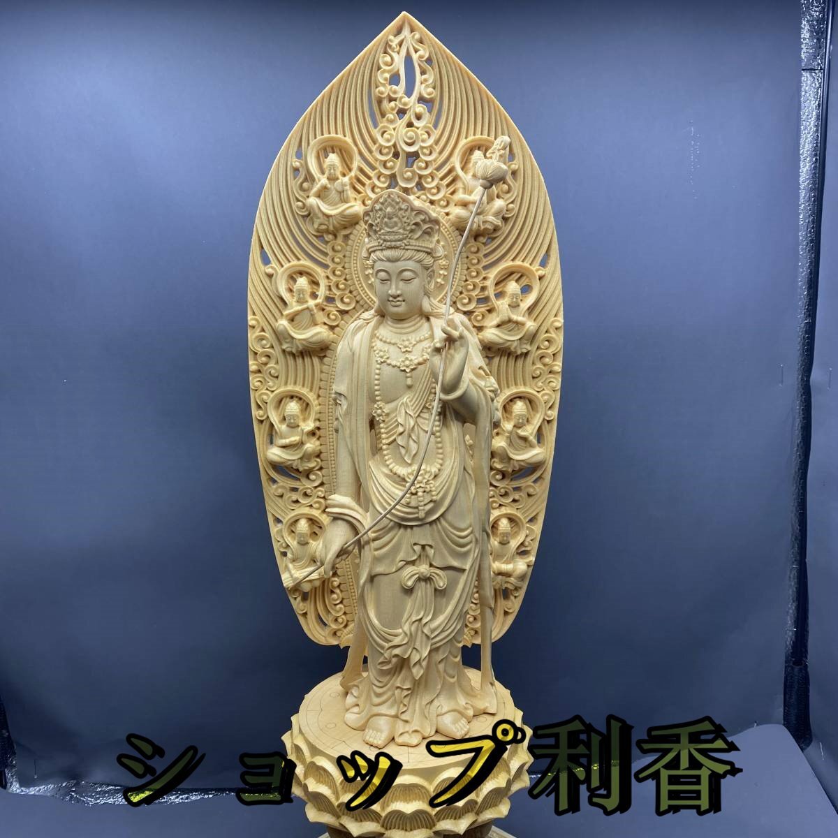 彫刻 新作 観音菩薩 仏教美術 風水 木造 精密細工 木彫仏像 仏教工芸品