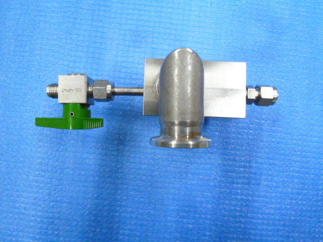 中古現状渡品 真空用配管用変換ブロック NW25ストレート⇔NW16エルボ スウェージロック継手×2個付き NW16,25 クランプ センターリング付