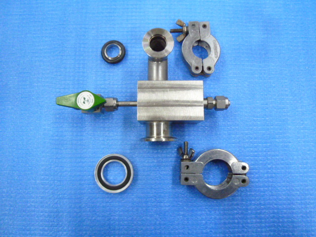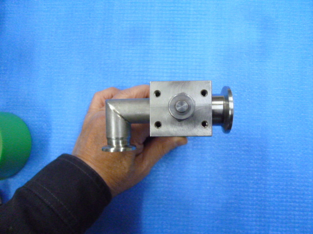 中古現状渡品 真空用配管用変換ブロック NW25ストレート⇔NW16エルボ スウェージロック継手×2個付き NW16,25 クランプ センターリング付き