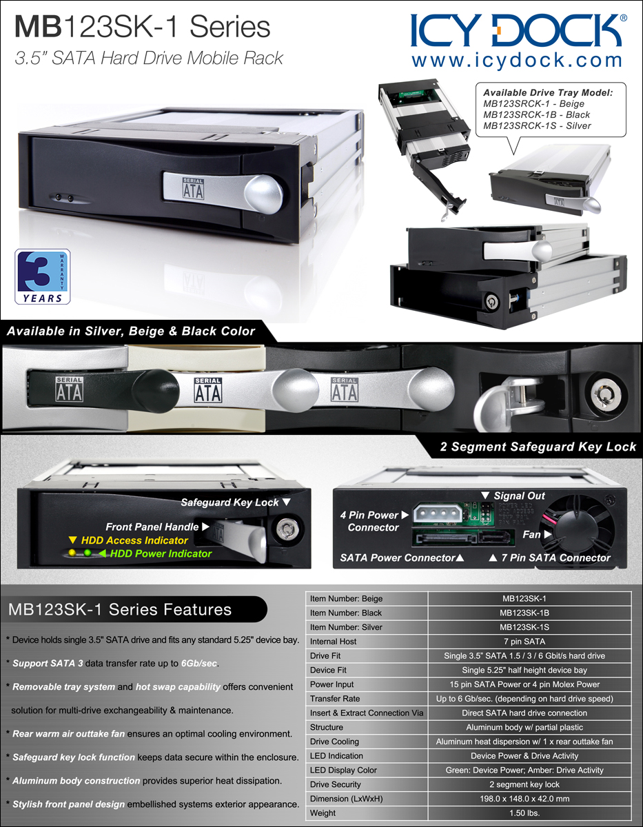 ICY DOCK SATA対応3.5インチHDD用アルミ製リムーバブルケース MB123SK-1B