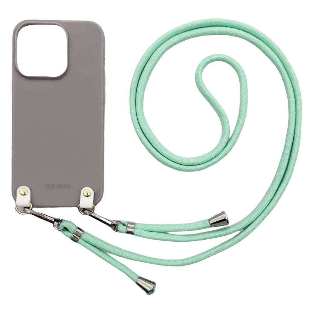iPhone13 Mini アイフォン13ミニ(くすみグレー/グリーン)ひも TPU ストラップ 肩掛け 首かけ 斜めが スマホケース かわいい