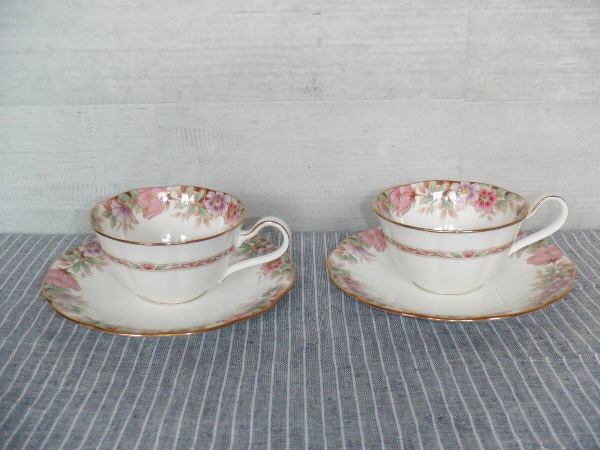 NORITAKE『ノリタケ★金彩 カップの内側にピンク色のかわいい華やかな花柄模様のカップ&ソーサー~2客セット』~箱なしになります。日本製です。カップの内側に、かわいい華やかな花柄模様があります。カップのサイズが、口径9.5cm、高さ5.5cm、ソーサーのサイズですが、直径15.8cm、高さ1.8cmになります。採寸の方ですが、多少の誤差はお許し下さい。自宅保管につき、ノークレームノーリターンでお願いいたします。新規の方・評価の悪い方は、こちらの判断で取り消しさせていただく場合があります。