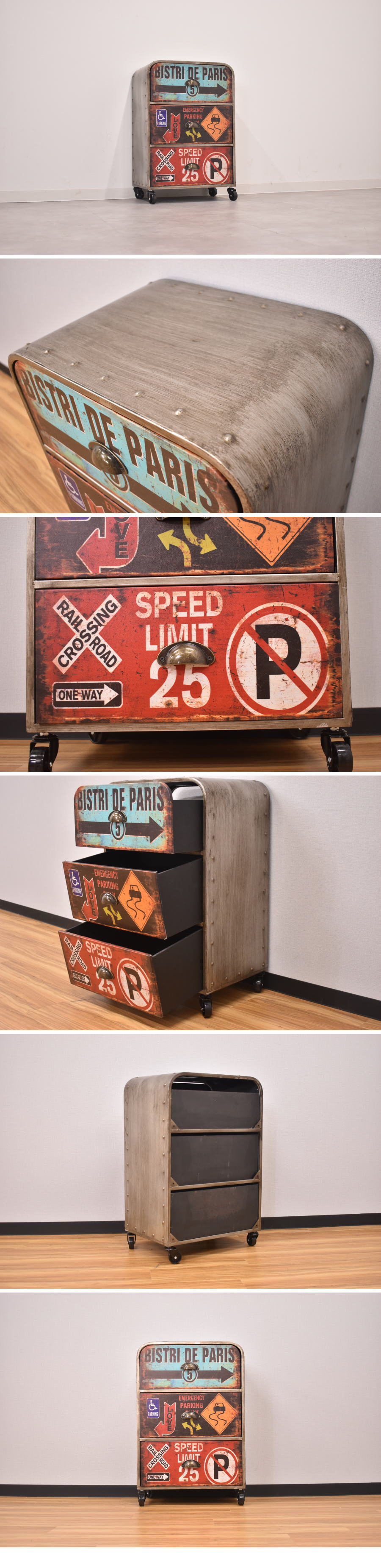 | 【限定送料無料 新品 展示処分品】アメリカン ヴィンテージ調キャスター付き 3段 収納 チェスト |