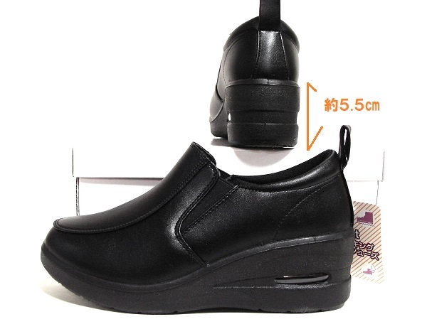 【新品】【NEW PEPE】軽量厚底★5.5㎝★スリポン★1007/BK/22.0㎝★柔らか!★エアークッション★