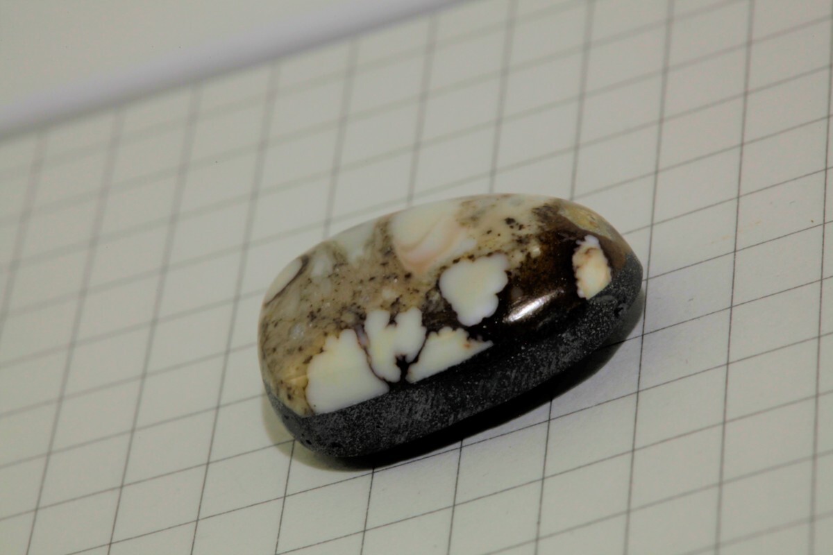 色は基本的には白と茶色のコンビネーションですがヘマタイトという鉄分を多く含んだ鉱物が入っていることが多いためオレンジがかったり赤っぽかったり変化に富み、特にその模様の多彩さは見ていて飽きません。全体的に硬度が高く光っています。(硬い=光り輝きます。)