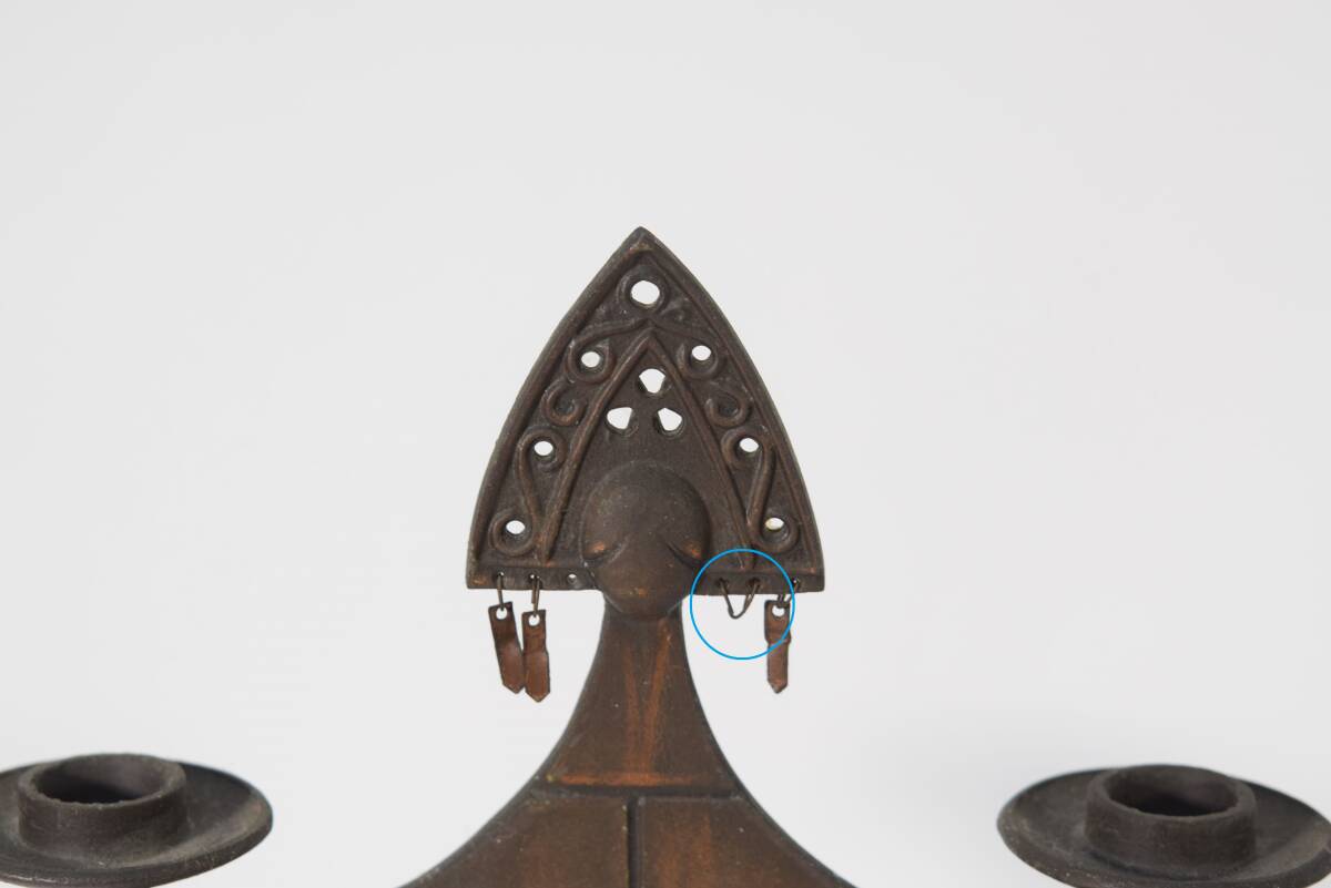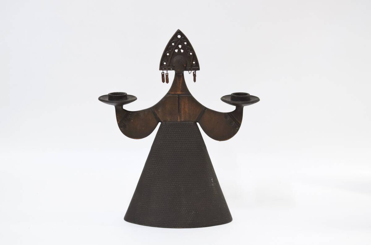人形を象ったユニークなフォルムの銅製のキャンドルホルダーです