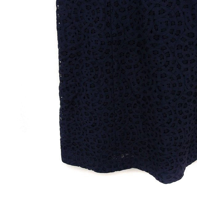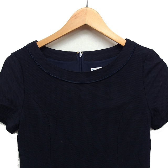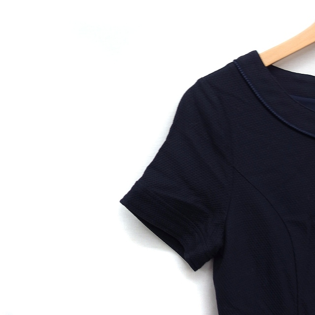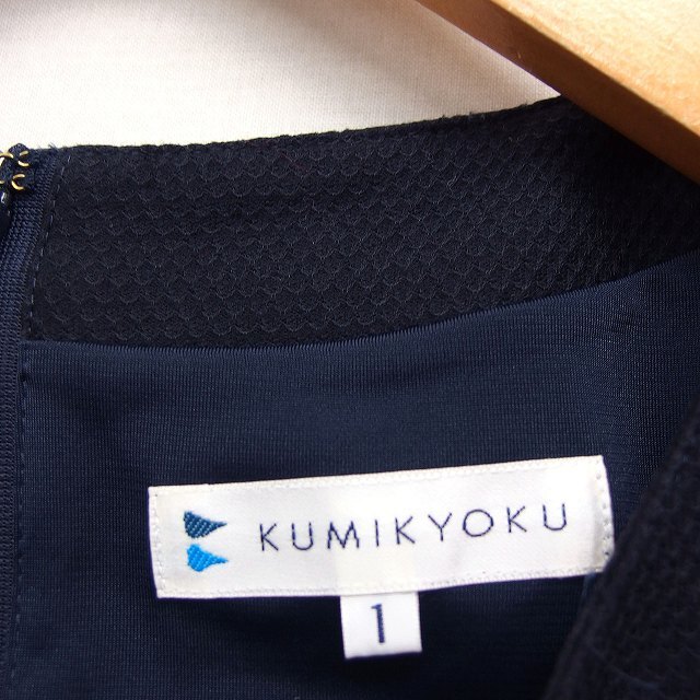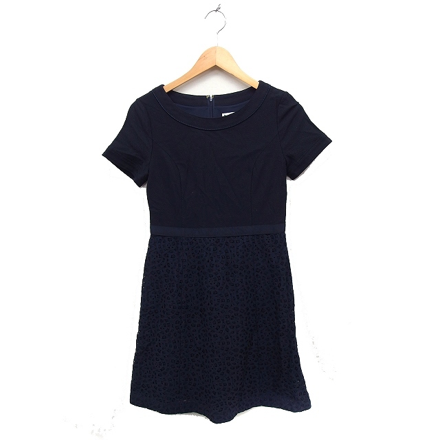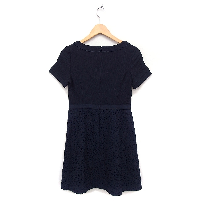 クミキョク 組曲 KUMIKYOKU 切替 フレア ワンピース 半袖 ひざ丈 ボートネック レース 無地 1 ネイビー 紺 /FT44 レディース