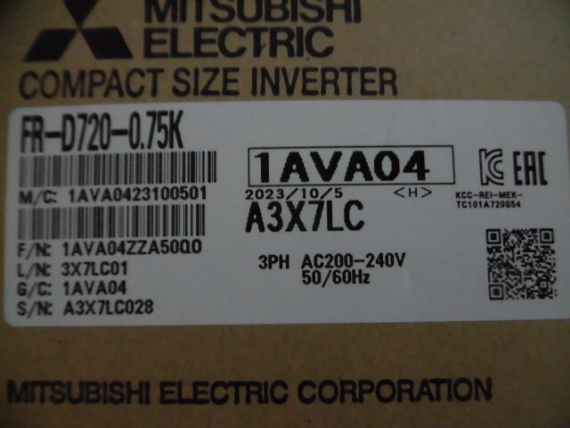 三菱電機 インバータ FREQROL FR-D720-0.75K 2023年10月5日製造 国内より 落札当日発送可 新品 未使用 6ヶ月保証 | ||