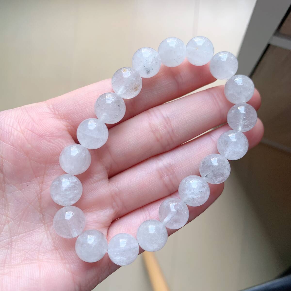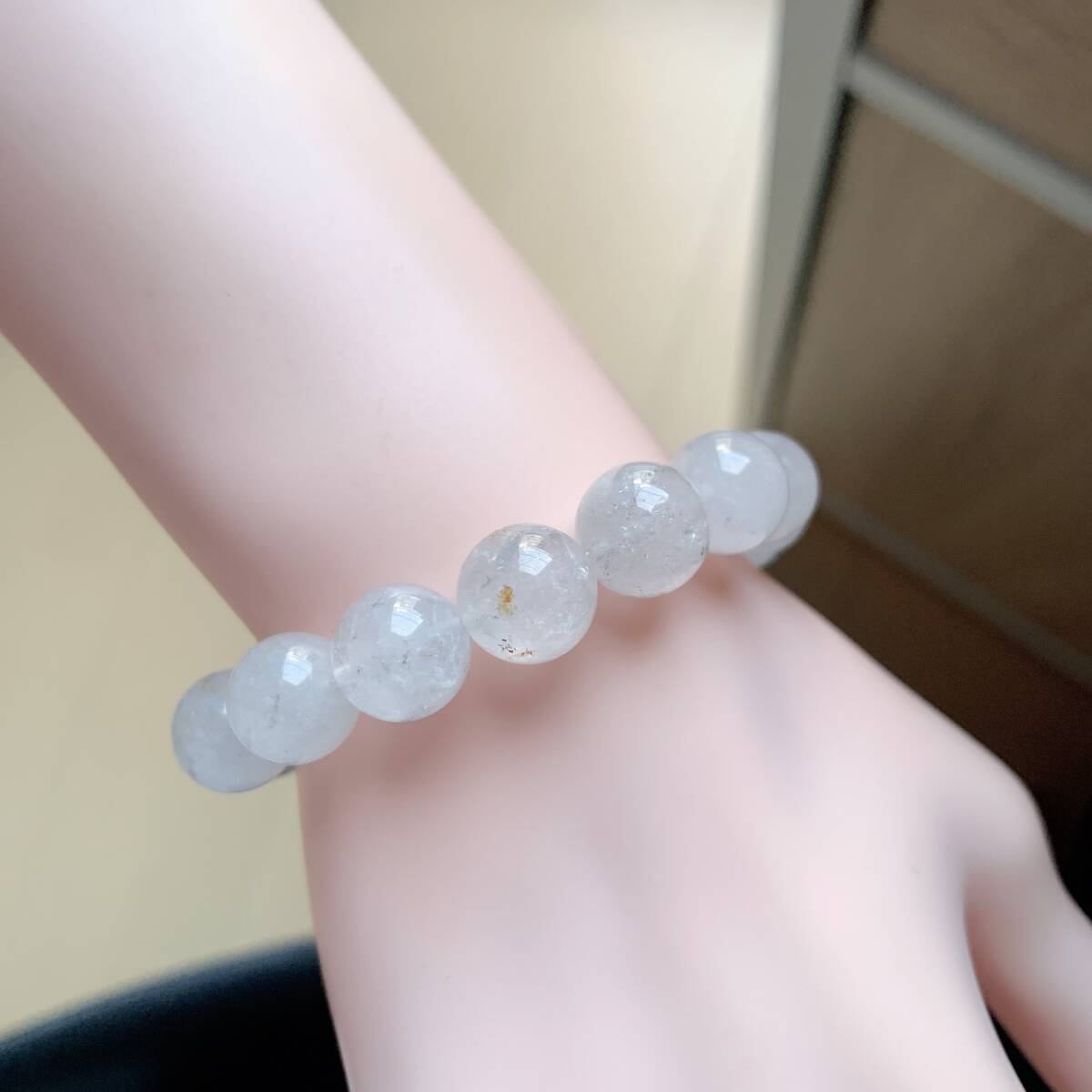 ◇ホワイトガーデンクォーツ(白庭園水晶)◇パワーストーン◇ブレスレット◇天然石◇巾着袋付き◇プレゼントにも029B41306