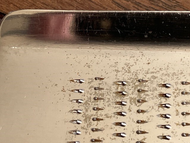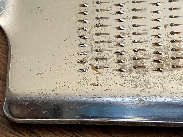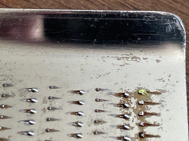 すり金 おろし金 ステンレス製 全長11㎝ 幅7.35㎝ 56g 使用品 わさび 山葵 しょうが 生姜 にんにく など 送料無料 底値