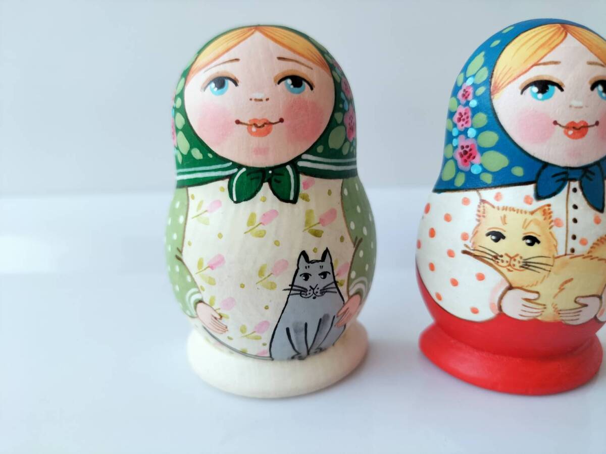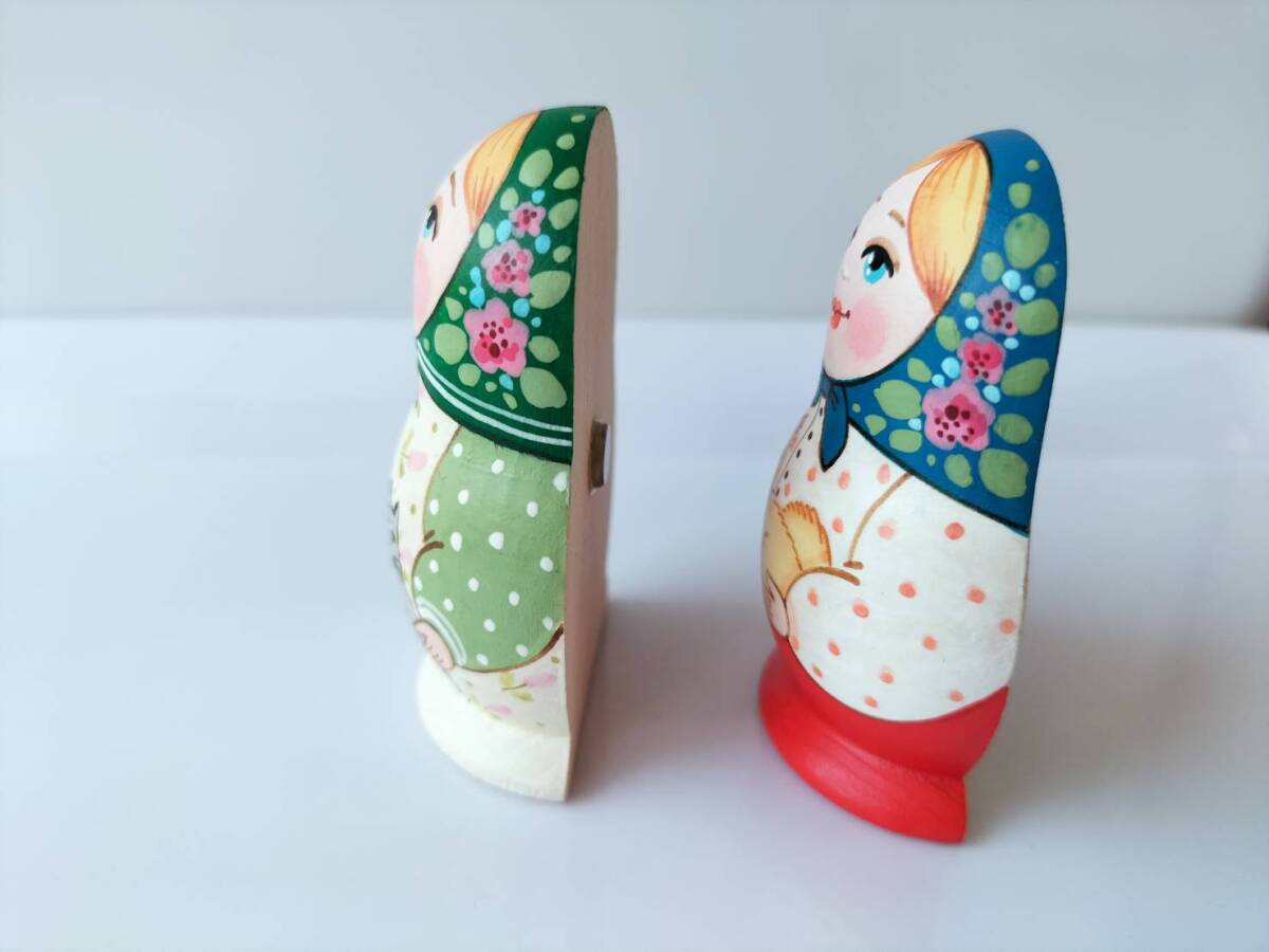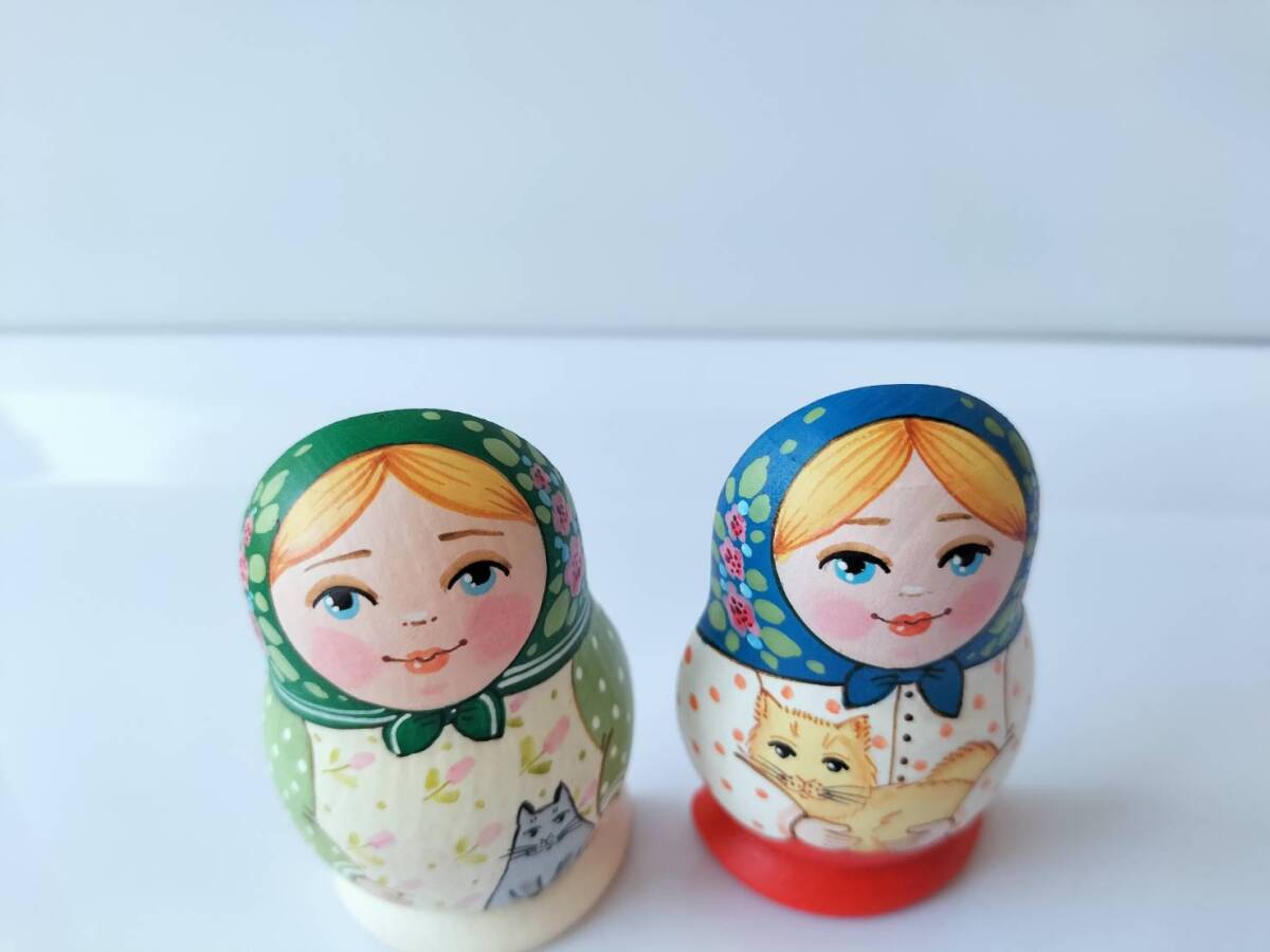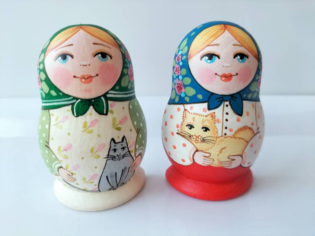 彼女の描くマトリョーシカや起き上がりこぼしは、可愛らしい顔が特徴的です。パステルカラーな色彩は誰もが持つメルヘンチックな淡い童心を思い起こさせます。
