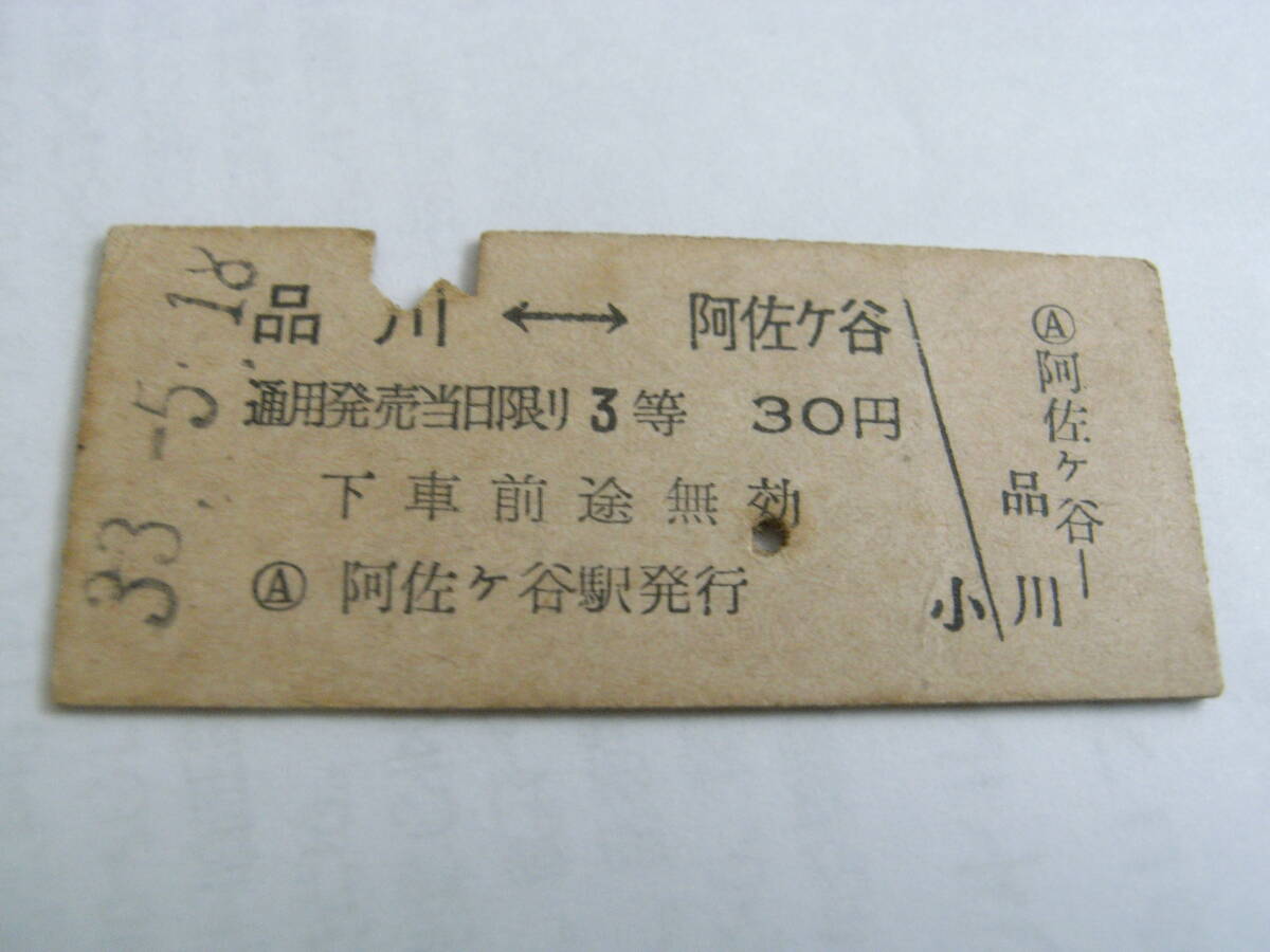 中央本線 品川-阿佐ヶ谷 3等30円 昭和33年5月18日 阿佐ヶ谷駅発行 国鉄