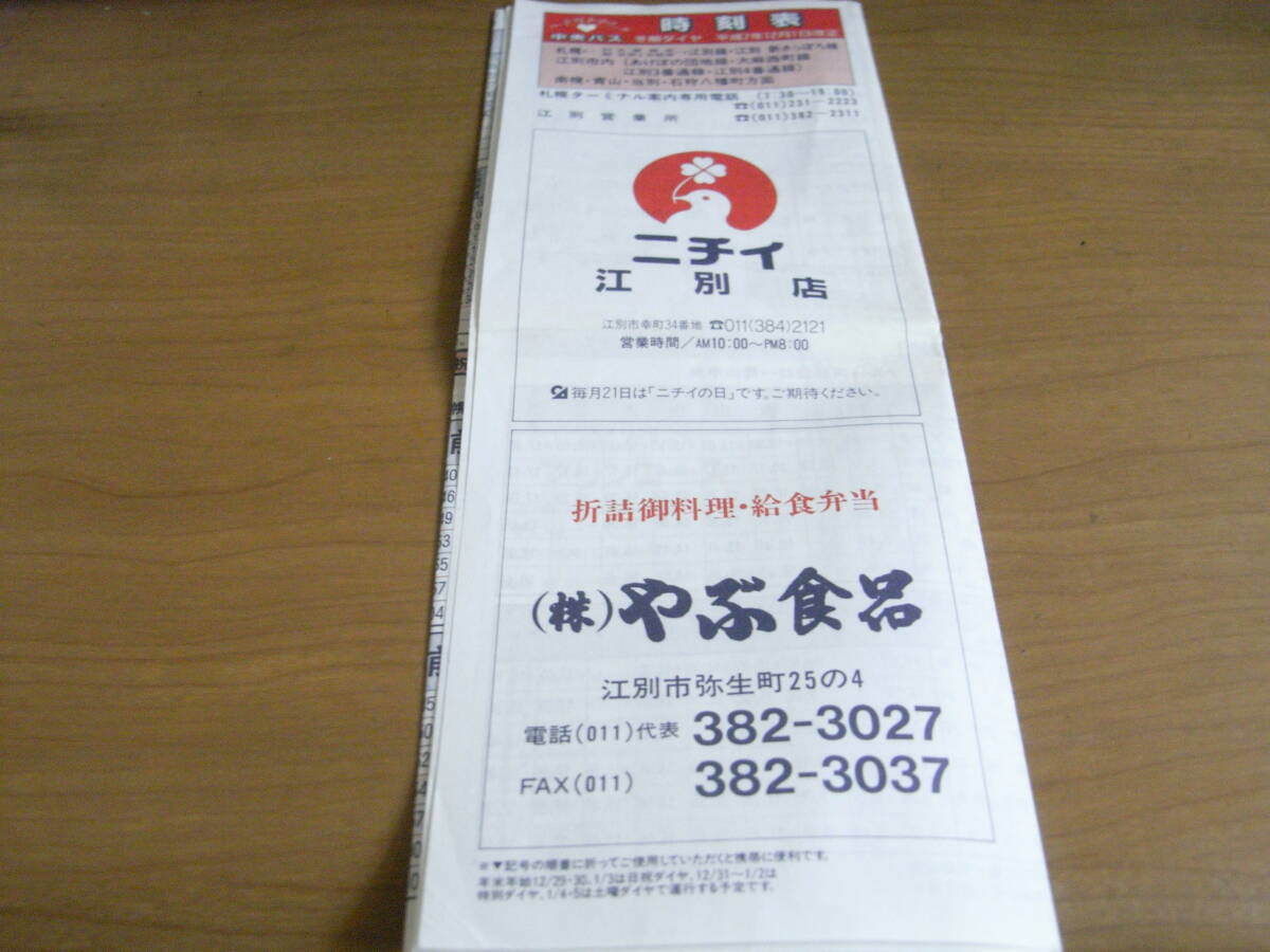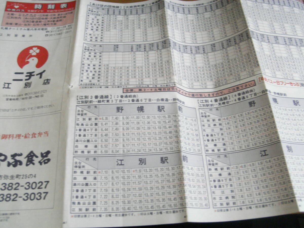 中央バス時刻表 冬期ダイヤ 平成7年12月1日改正