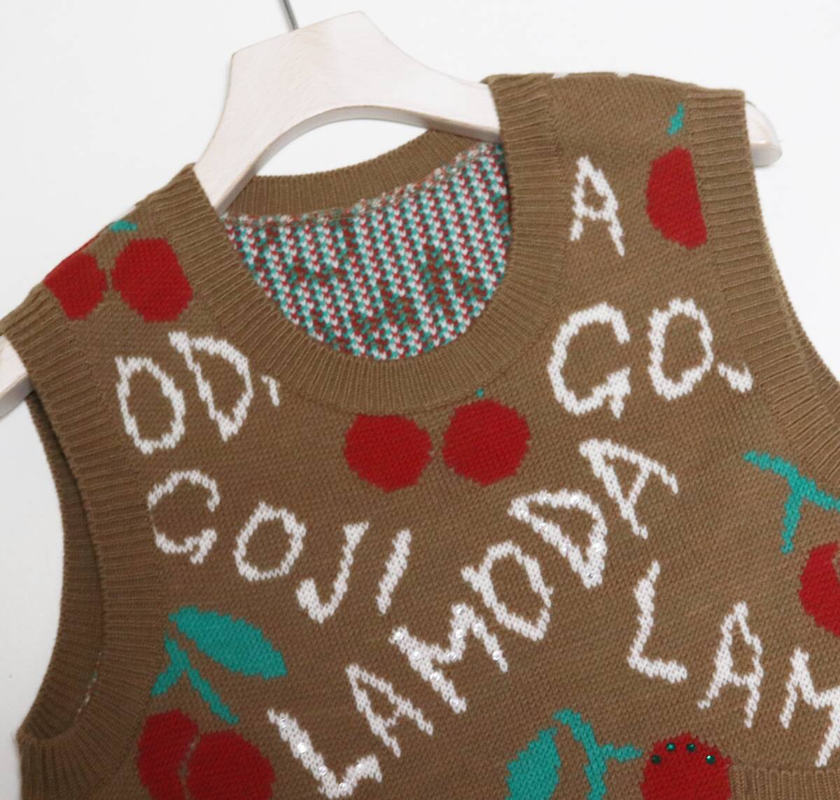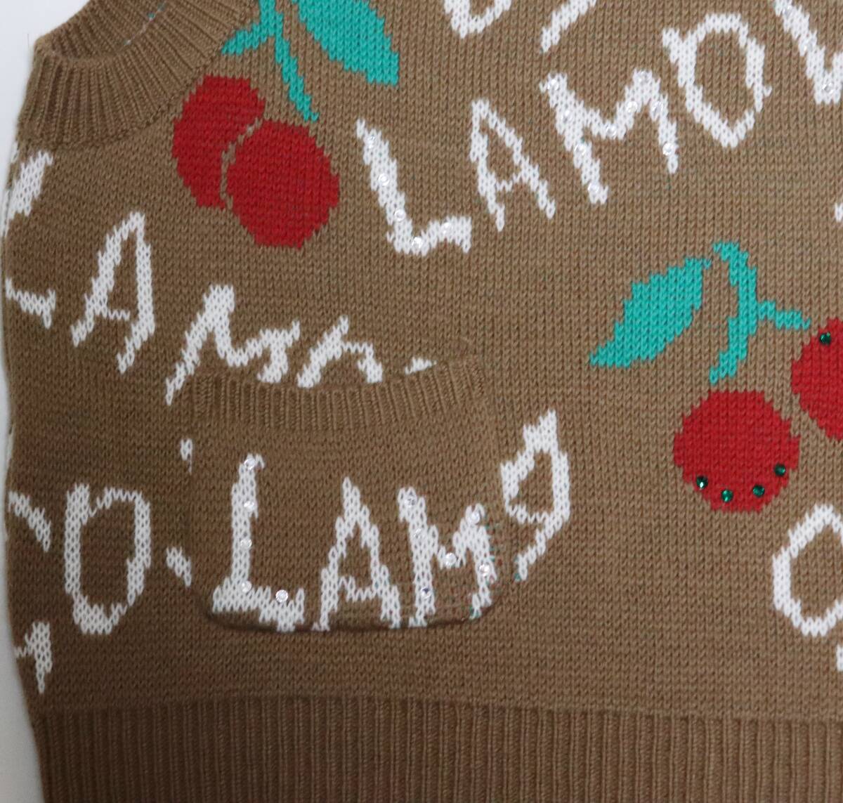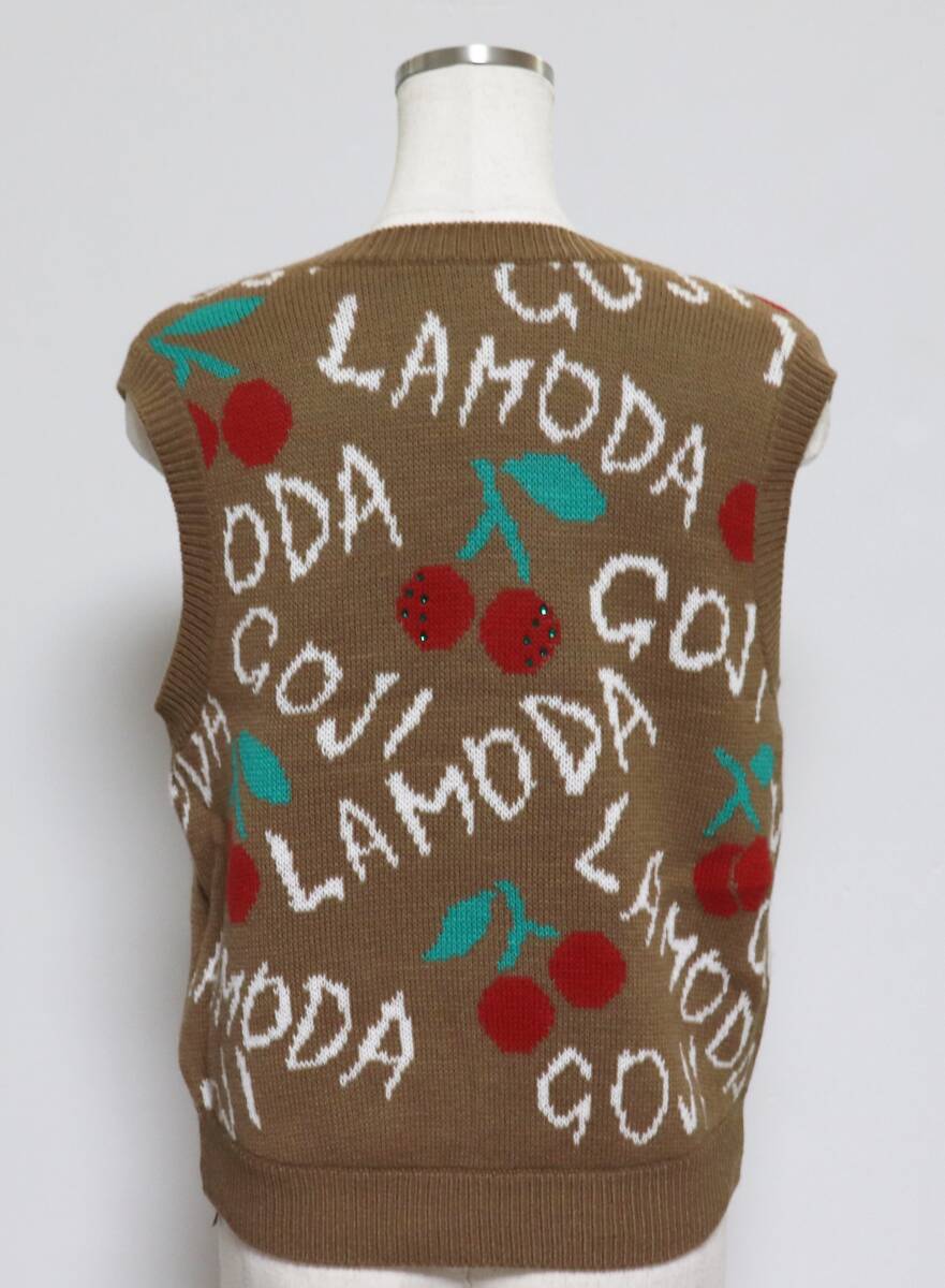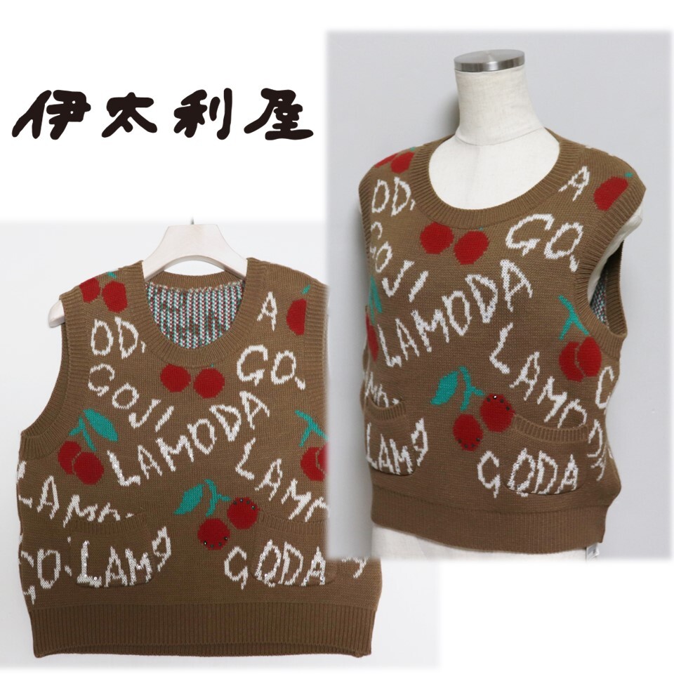 | 《伊太利屋 LaModaGOJI イタリヤ》新品 定価41,800円 伸縮性あり チェリー柄 プルオーバーニットベスト 9サイズ A9760 |
