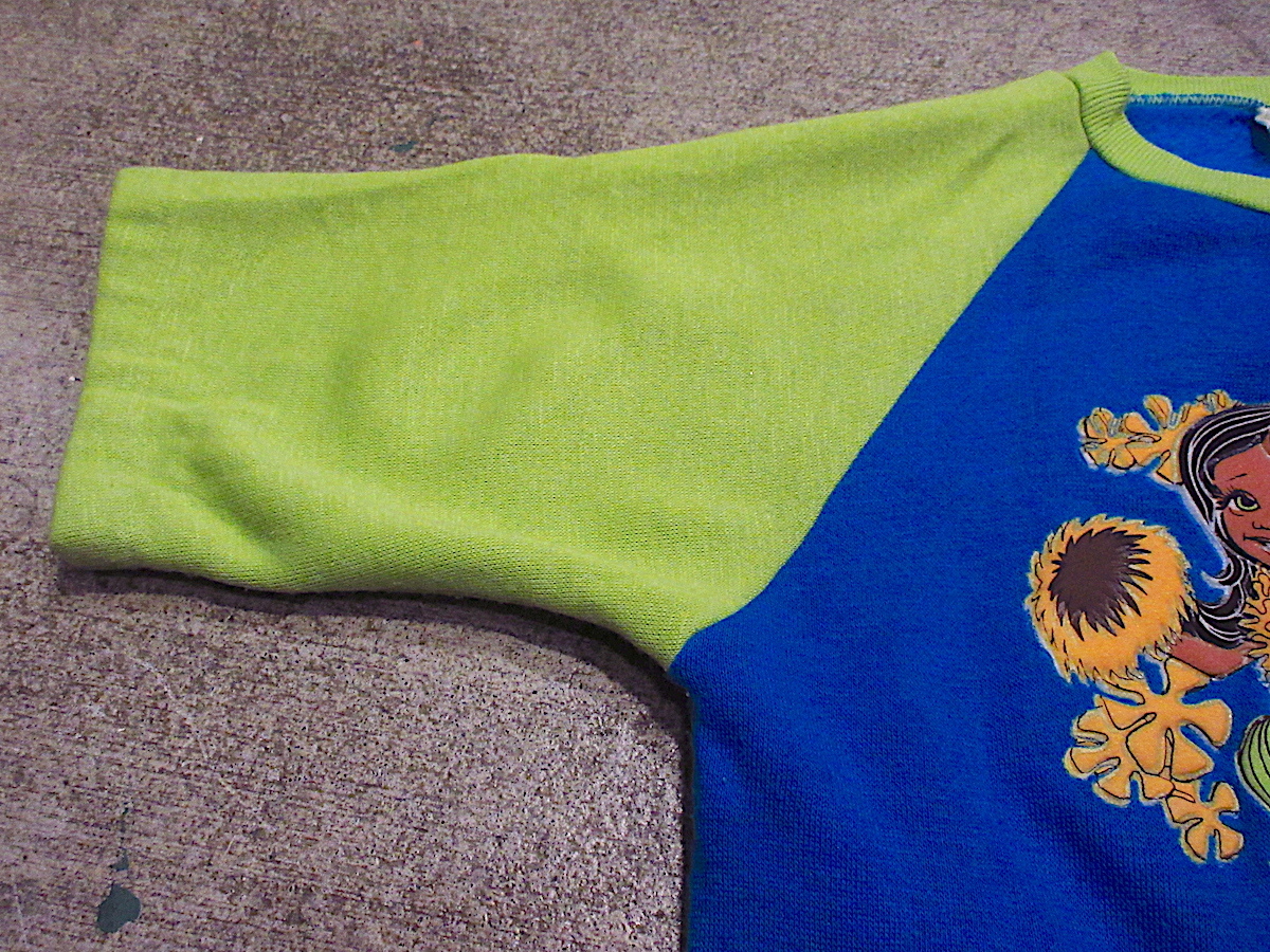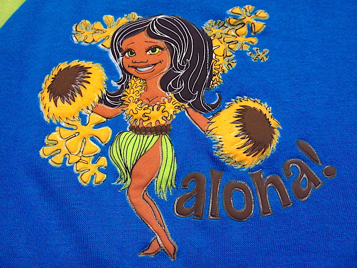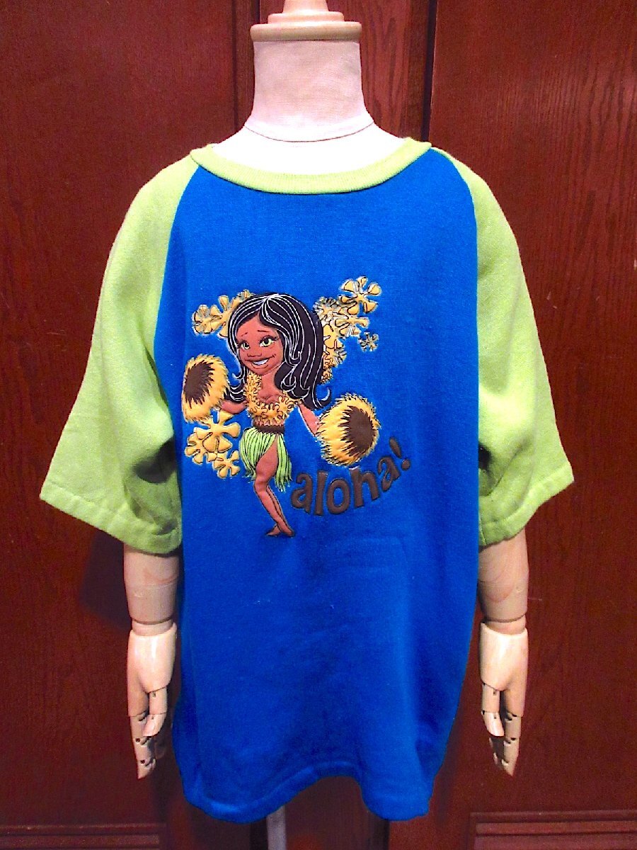 1960's~1970's キッズ aloha! ハワイアンガール 裏起毛 ラグラン 半袖スウェット size 16 /18