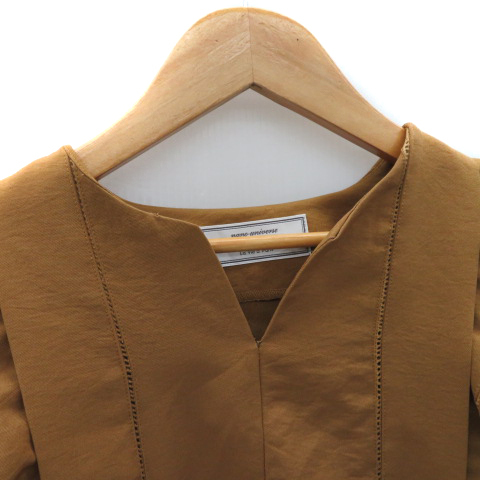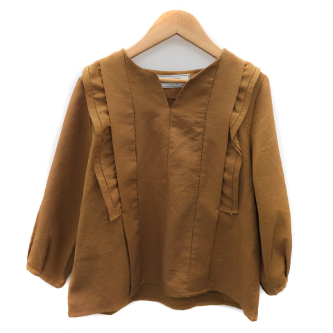 ブロードゥリー&コー Broderie&Co ナノユニバース ブラウス カットソー 七分袖 スリットネック 無地 F ブラウン /YK1 レディース
