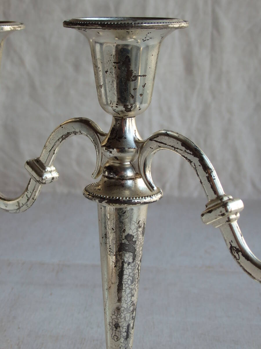 イギリスアンティーク シルバープレート キャンドルスタンド 3灯 英国 燭台 蝋燭立て シャビー デコ インテリア 装飾 ディスプレイ tt